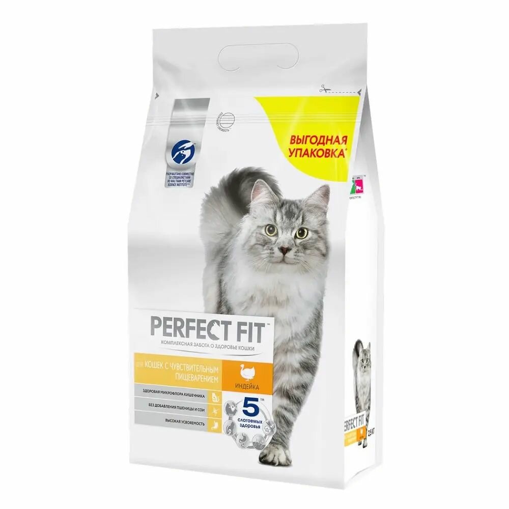 Корм сухой для взрослых кошек PERFECT FIT с индейкой, с чувствительным пищеварением, полнорационный, 2,5кг
