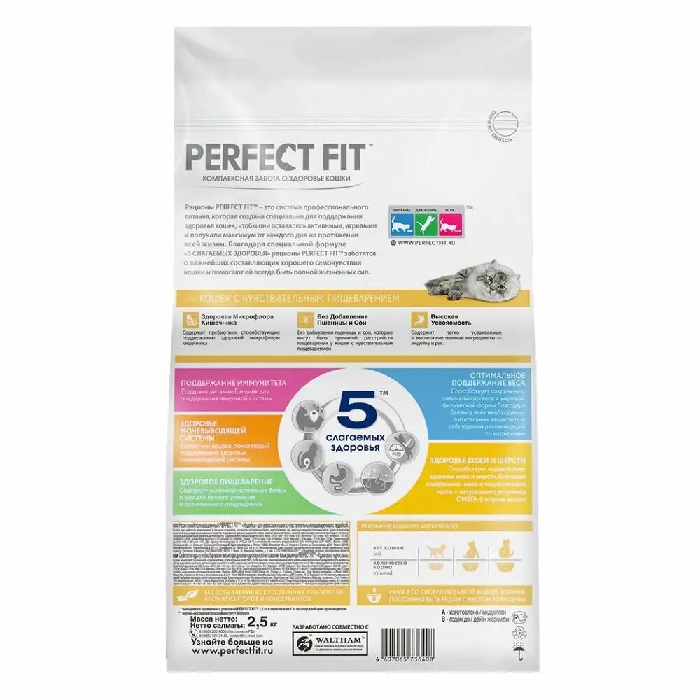 Сухой корм для кошек Perfect Fit при чувствительном пищеварении, с индейкой 2.5 кг