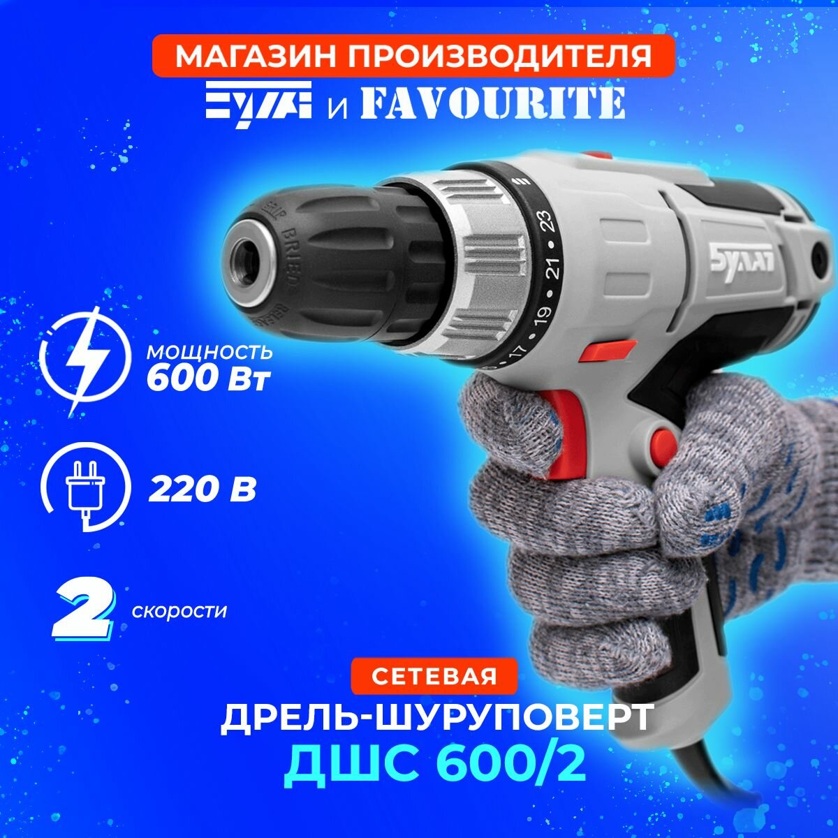 Дрель шуруповерт электрическая от сети булат ДШС 600/2, 2 скорости мощности 600 Вт быстрозажимной патрон