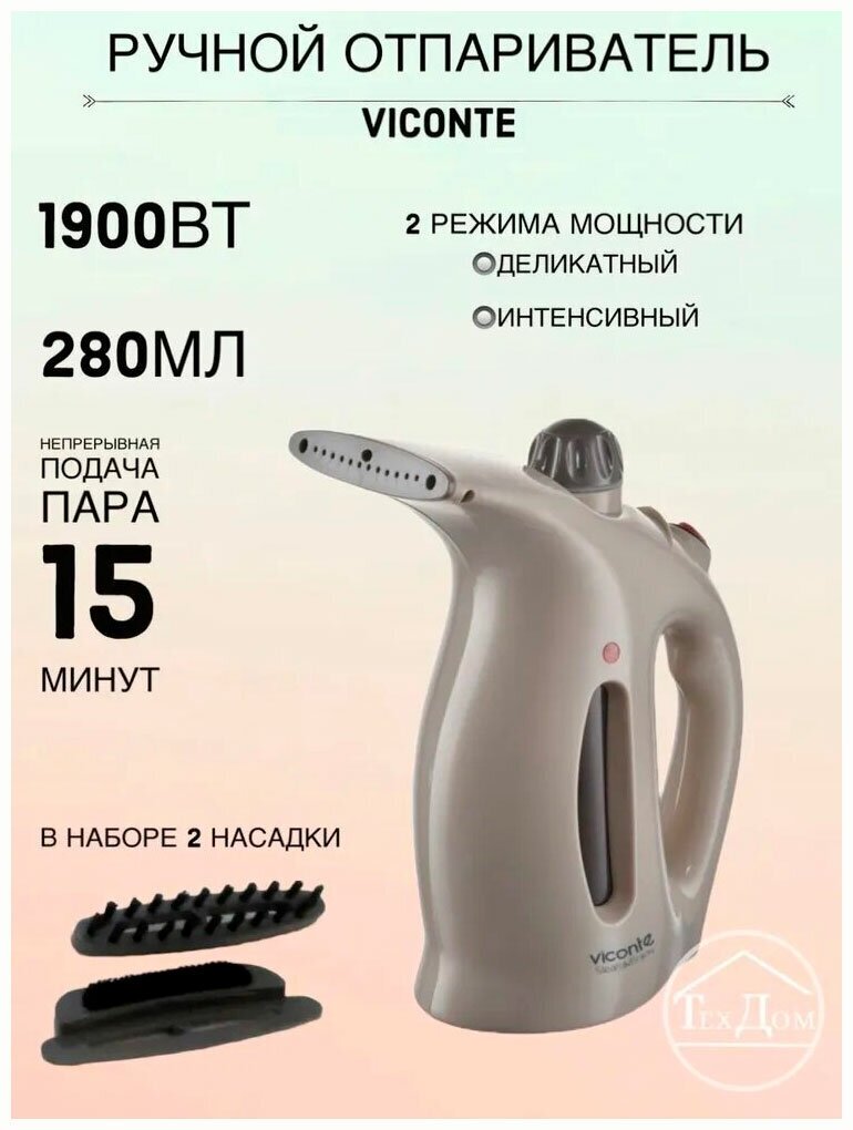 Отпариватель Viconte VC-112, бежевый/коричневый