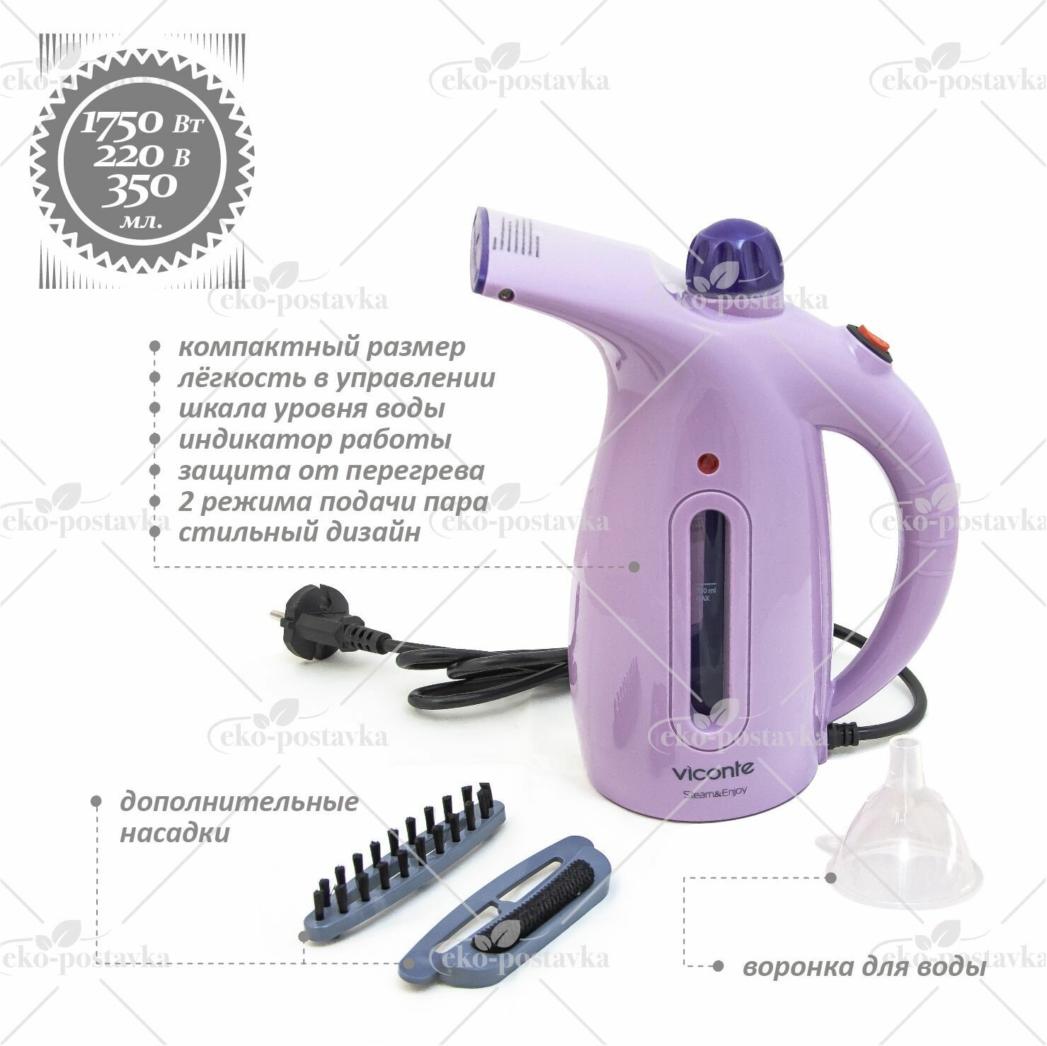 Пароочиститель Отпариватель Viconte ручной 1750 Вт портативный вертикальный дорожный парогенератор