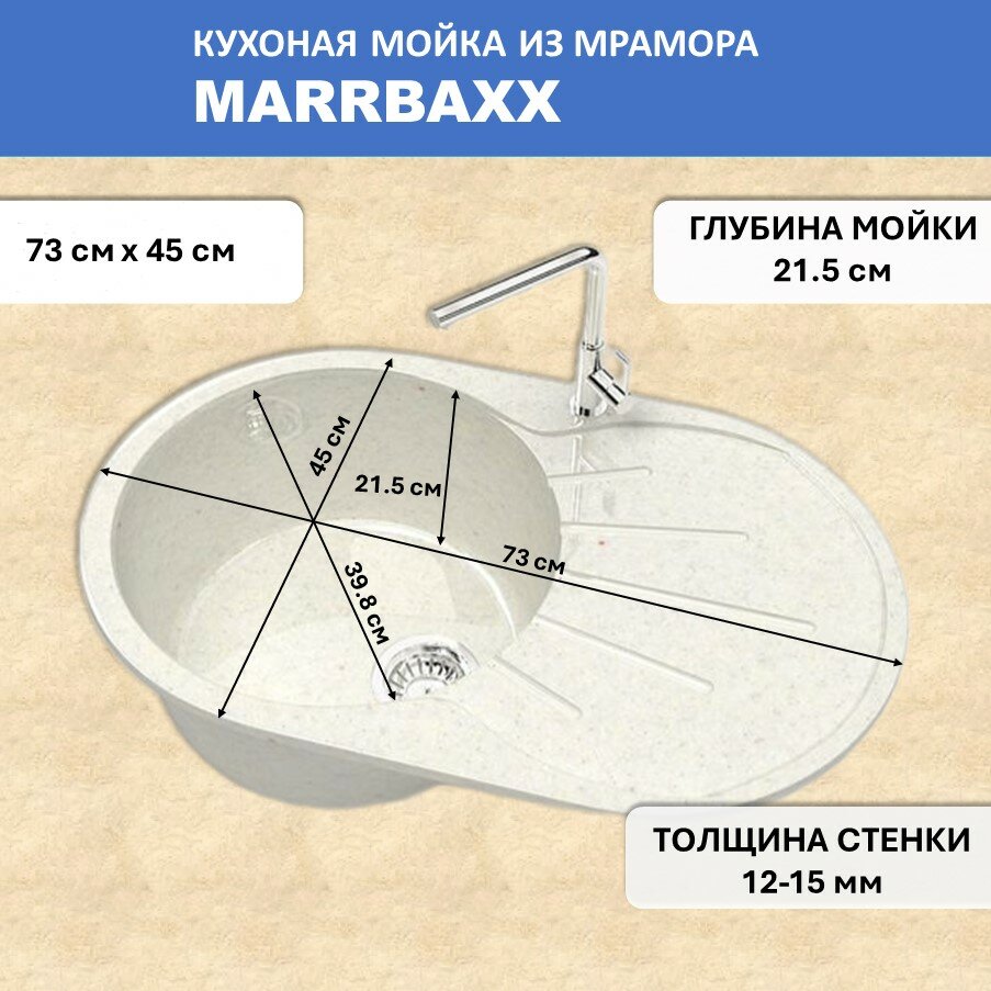 Мойка кухонная MARRBAXX Касандра Z110Q1 белый лед 730*450*215
