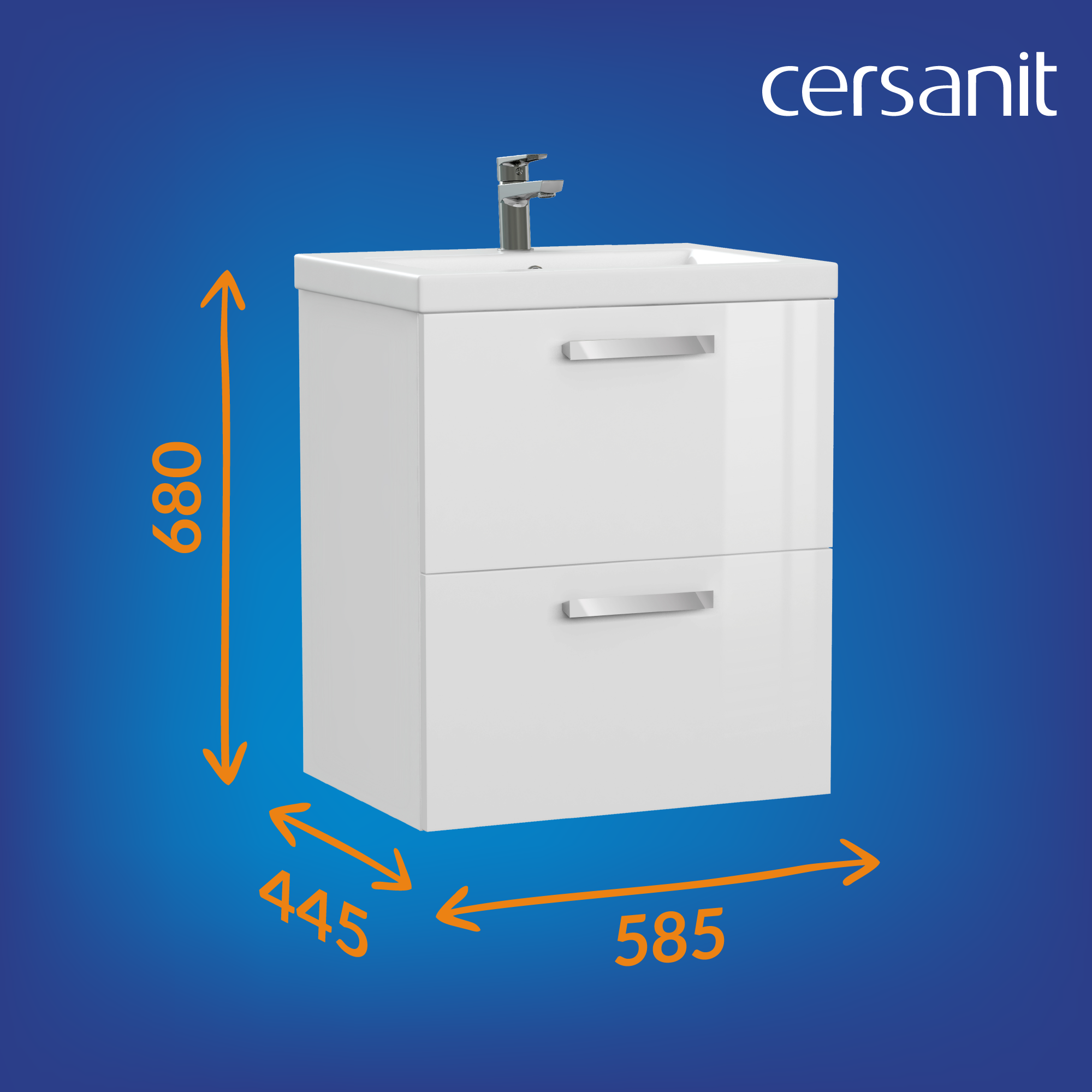 Тумба под раковину, для ванной комнаты Cersanit Melar, ШхГхВ: 59х44х68 см, цвет: белый