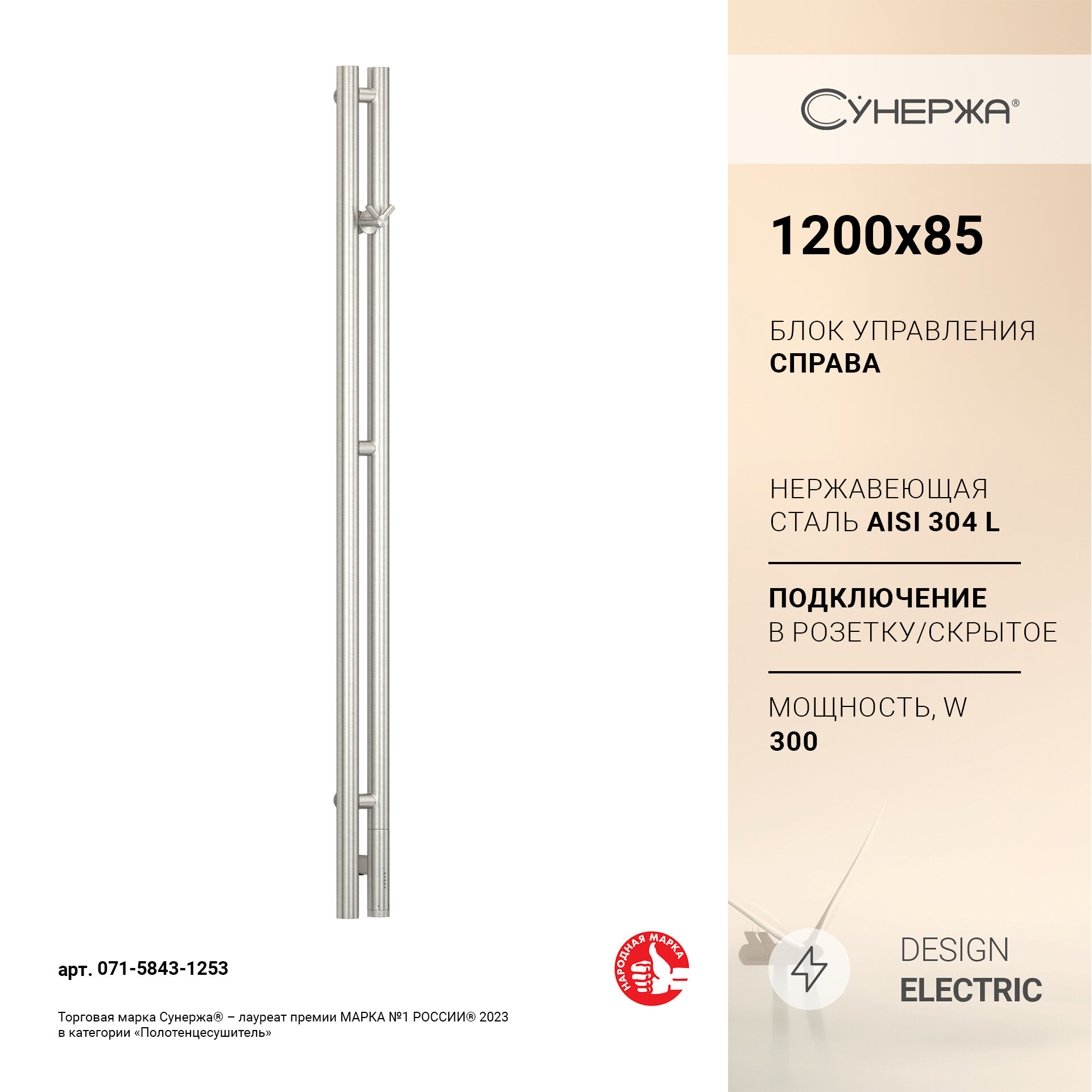 Полотенцесушители Электрический полотенцесушитель Сунержа Нюанс 3.0 1200 сатин арт. 071-5843-1253