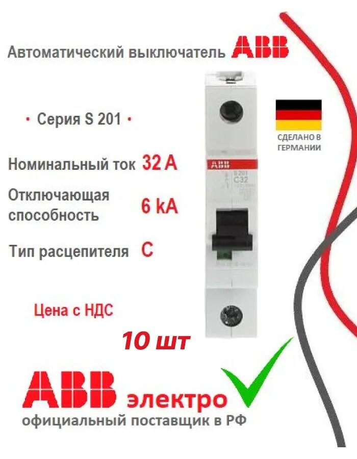 Автоматический выключатель ABB S201 C32 1 260 ₽ Подробнее