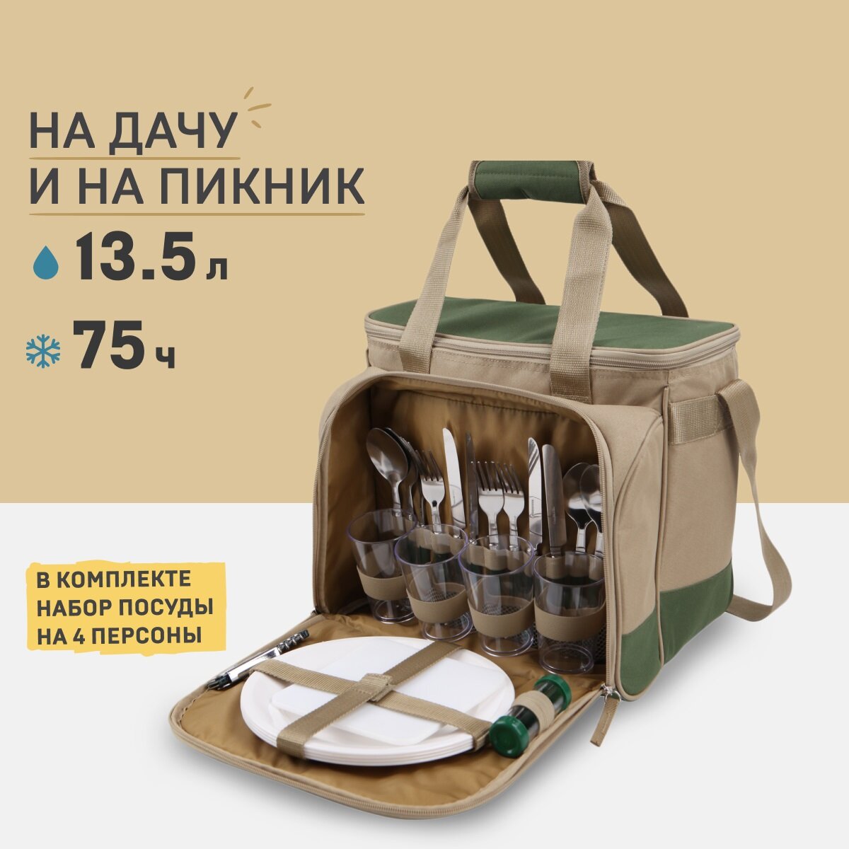 Наборы для пикника Термосумка "Арктика", с набором посуды для пикника на 4 человека, 13.5 л, 34 х 24 х 31 см Арктика 24