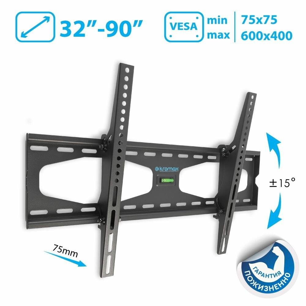 Кронштейн для телевизора настенный Kromax STAR-22 / до 90 дюймов / до 90 кг / vesa 600x400 / наклонное крепление для тв / держатель для телевизора