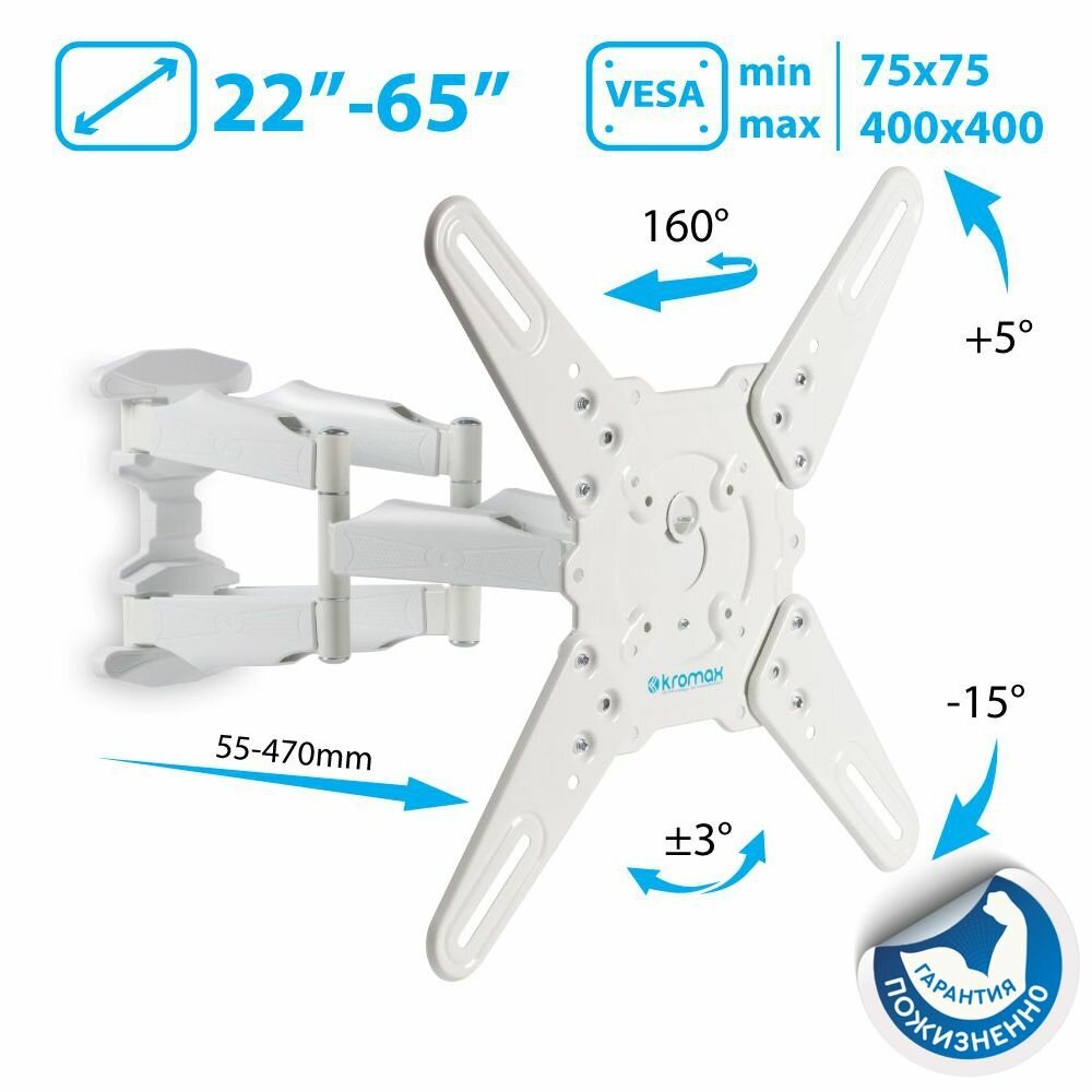 Кронштейн для телевизора Kromax для телевизора ATLANTIS-45 белый 22"-65" макс.45кг настенный поворот и наклон