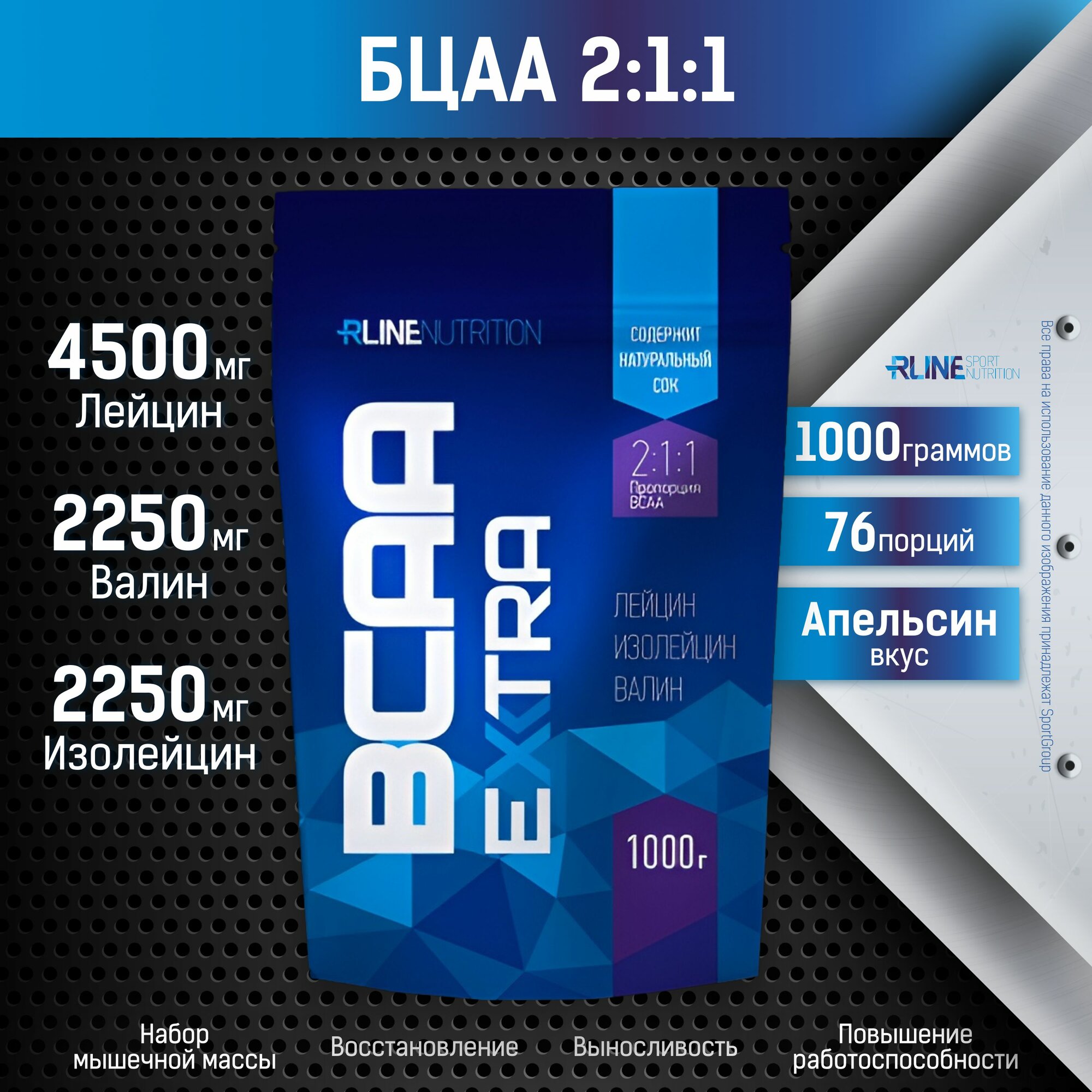 RLINE BCAA Extra (1000 г) большой пакет (Апельсин)