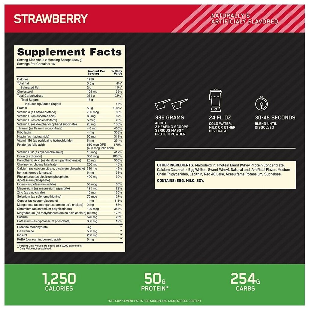 Optimum Nutrition Serious Mass 12lb (Strawberry)