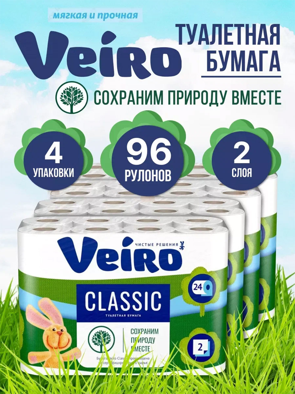Veiro Туалетная бумага "Классик", 2-слоя, 4 рулона, 6 упаковок 888 ₽ Подробнее