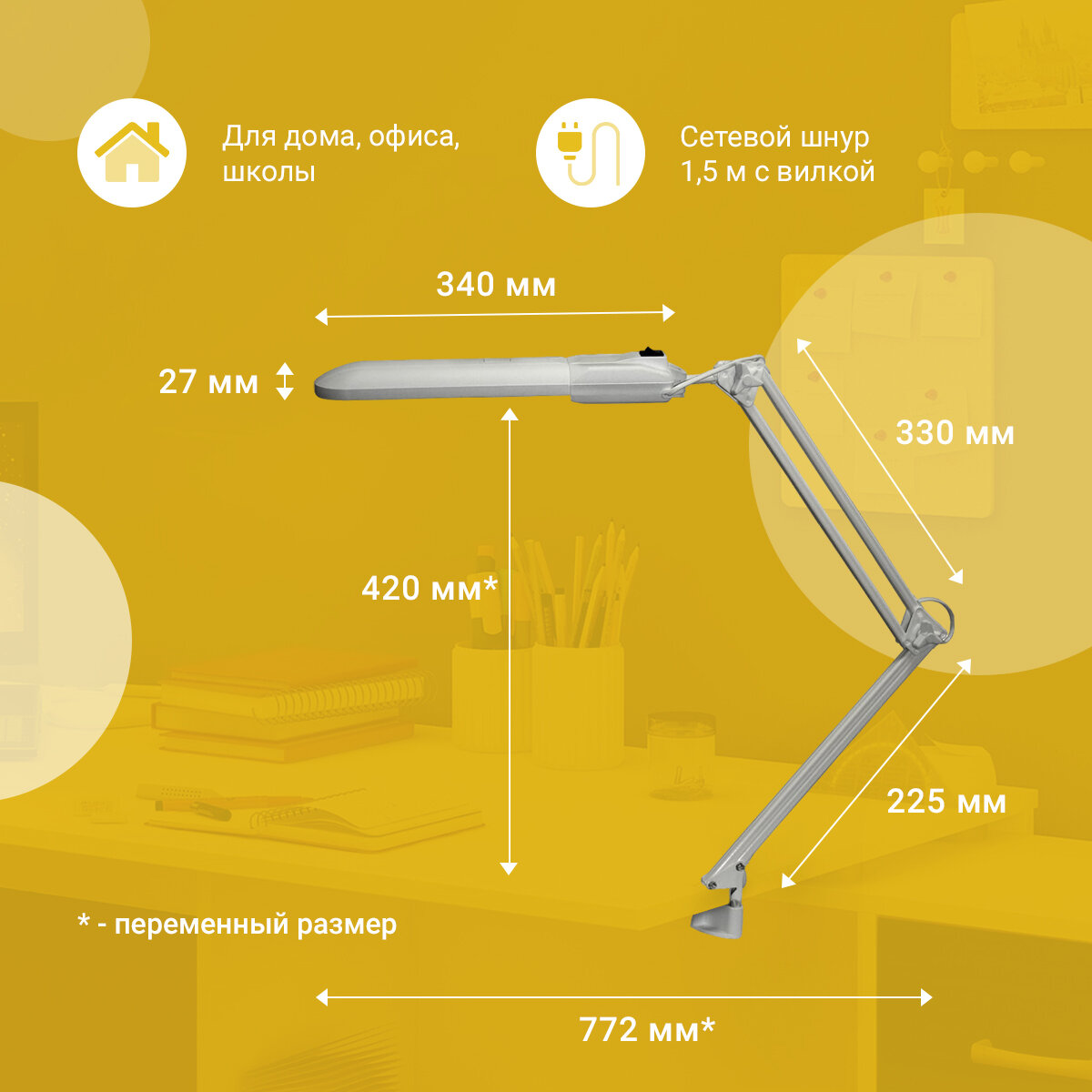 Настольный светильник трансвит "Дельта", на струбцине, люминесцентный, 11 Вт, серый, высота 70 см, 2G7 2 170 ₽ Подробнее