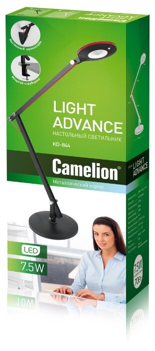 Лампа офисная светодиодная Camelion Light Advance KD-792, 6 Вт, цвет арматуры: черный, цвет плафона/абажура: черный