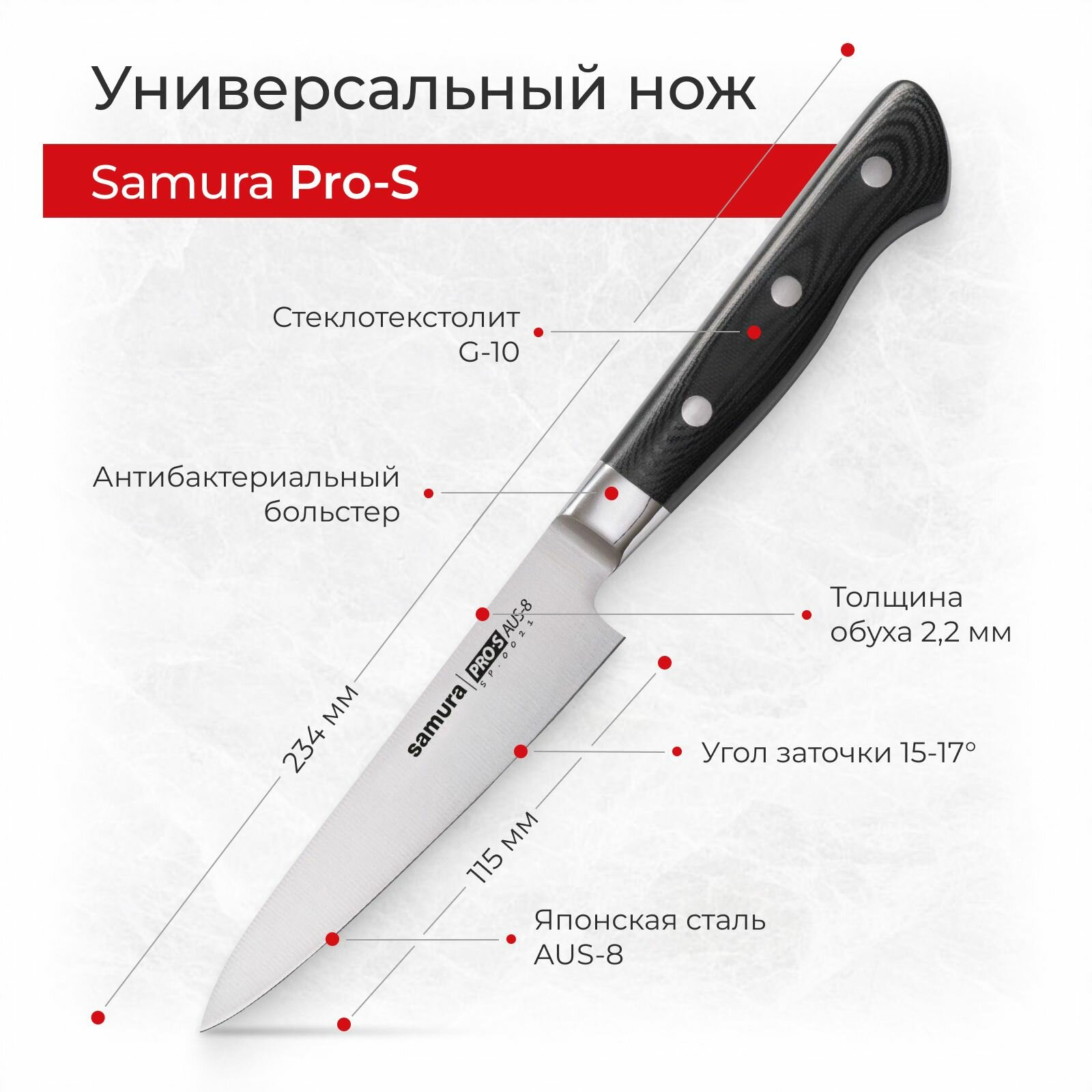 Набор ножей Нож кухонный поварской Samura Pro-S универсальный для нарезки профессиональный SP-0021/G-10