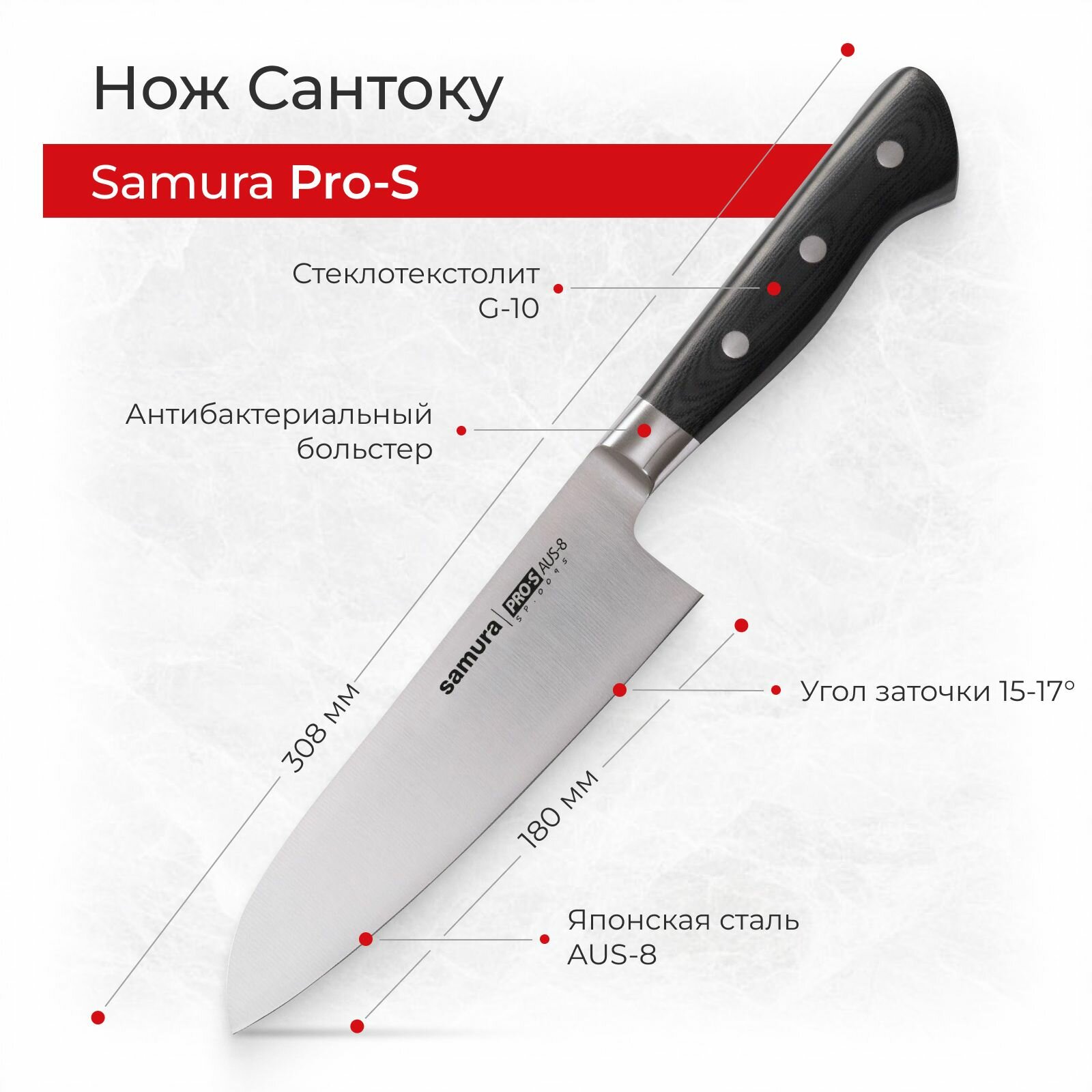 Набор ножей Нож кухонный поварской Samura Pro-S Сантоку универсальный профессиональный SP-0095/G-10