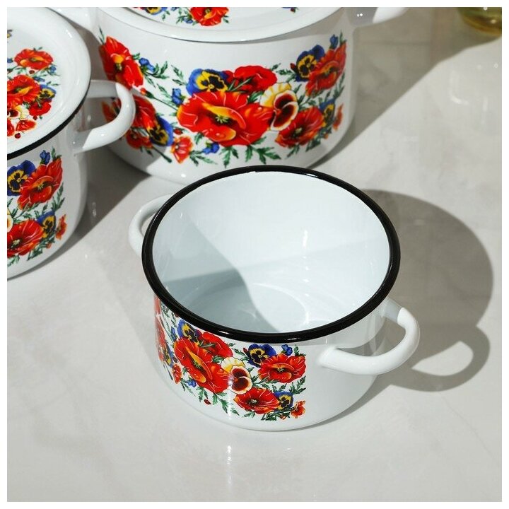 Кастрюля Набор эмалированных кастрюль 33 маки мечта белоснежный (1,5+2,9+4,5л), Череповец.