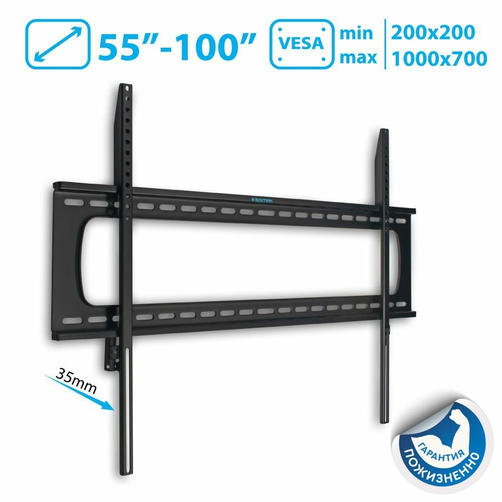 Кронштейн для телевизора Kromax STAR PRO-111, 55-100", настенный, фиксированный, черный [20246]