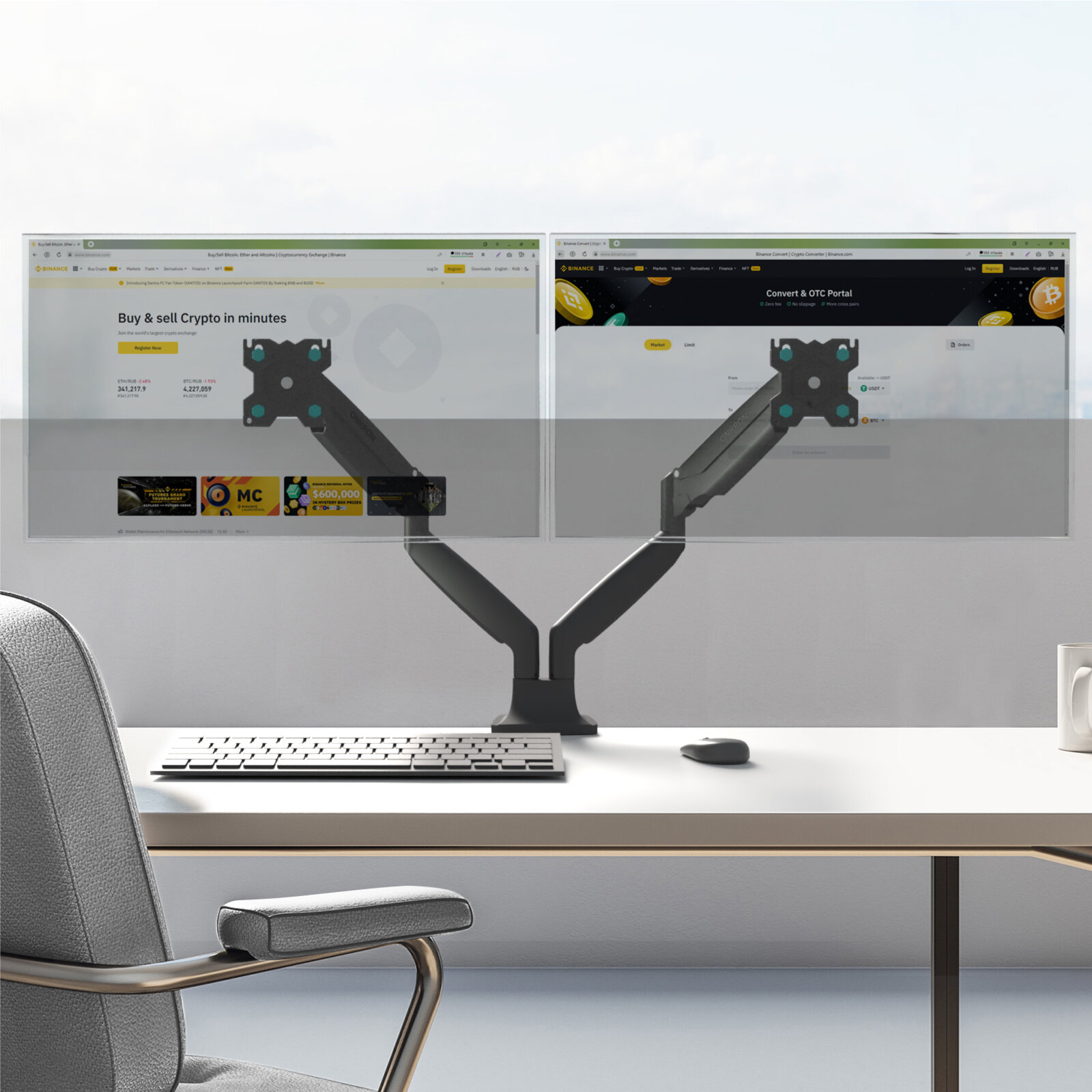 Крепление ONKRON G200 для двух мониторов 13"-32" настольное, 2 по 9 кг, газлифт, белый