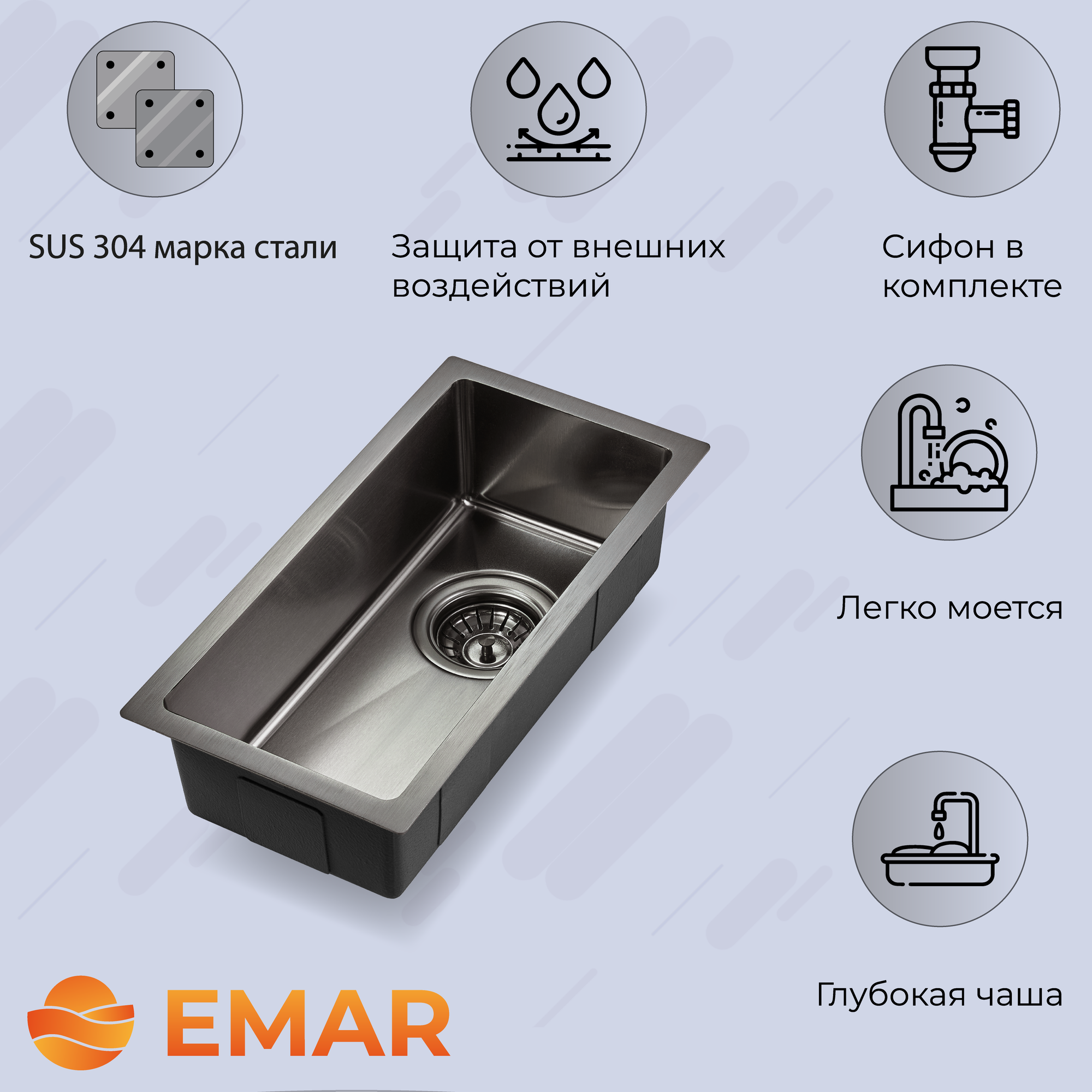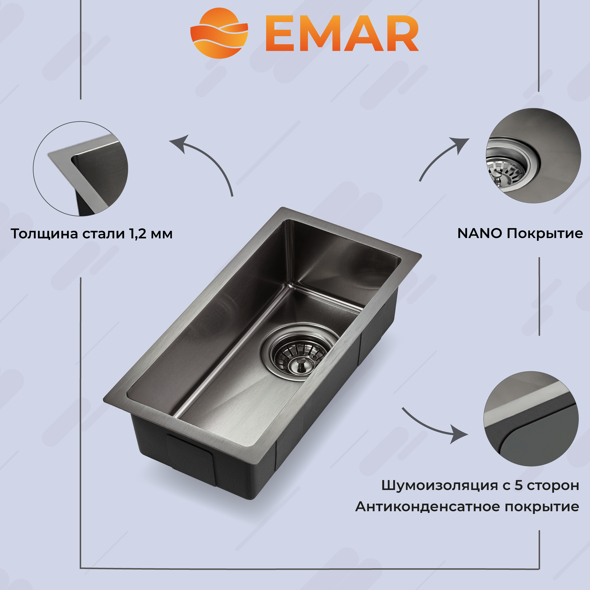 Emar EMB-113 PVD Nano Dark, мойка, нержавеющая сталь, вороненая сталь