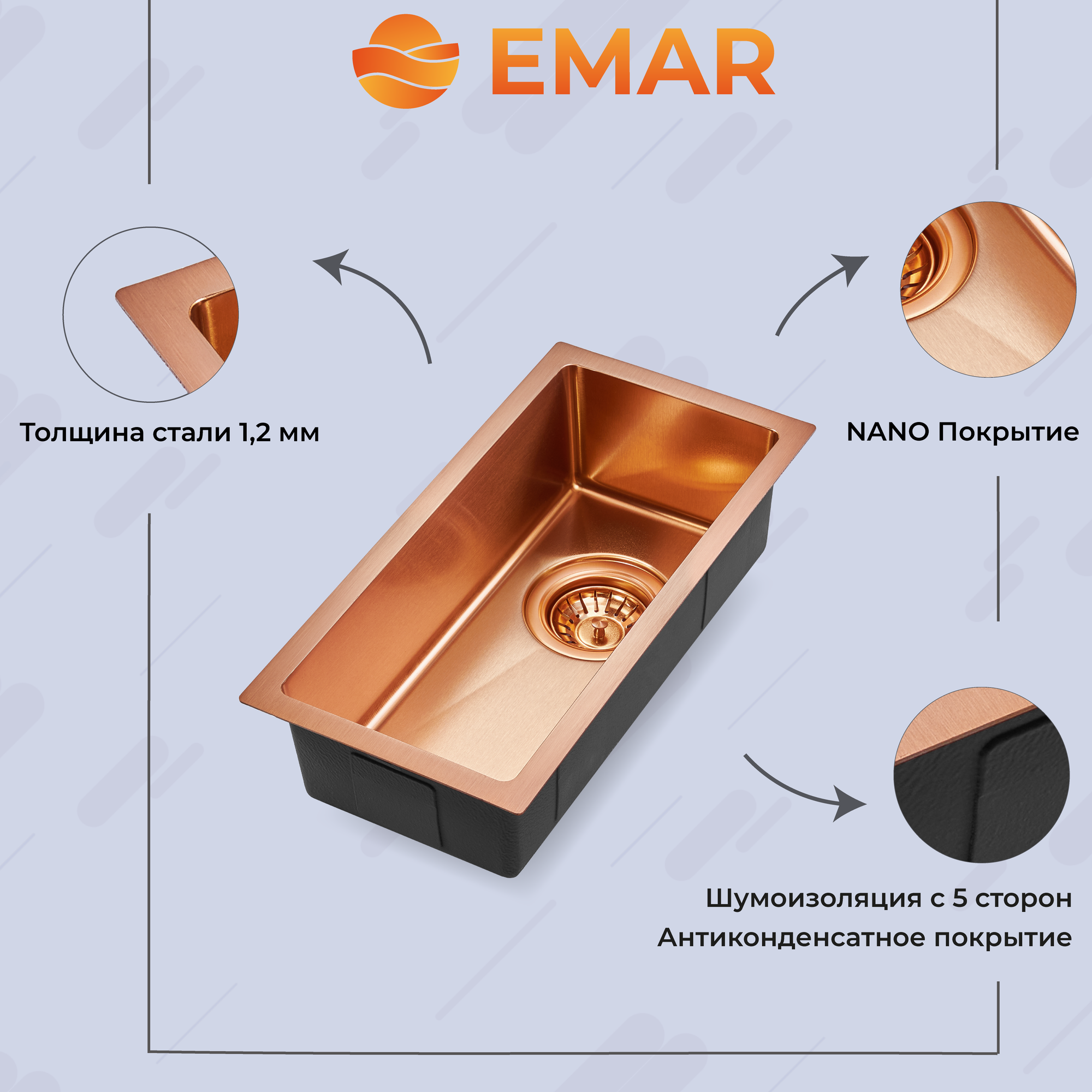 Кухонная мойка Emar EMB-113 PVD Nano Coppery