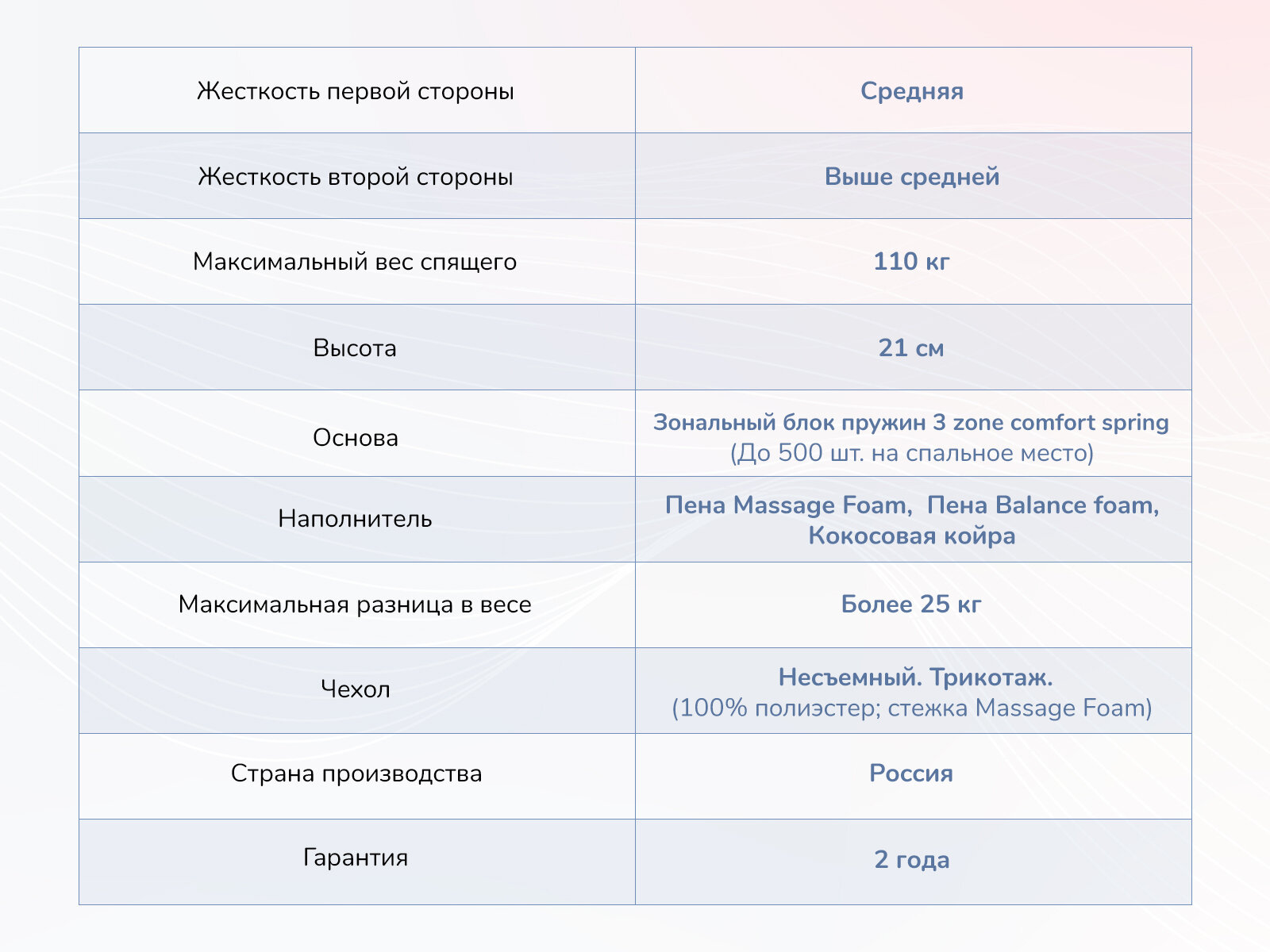 | Количество пружин | 256 шт/м2 |