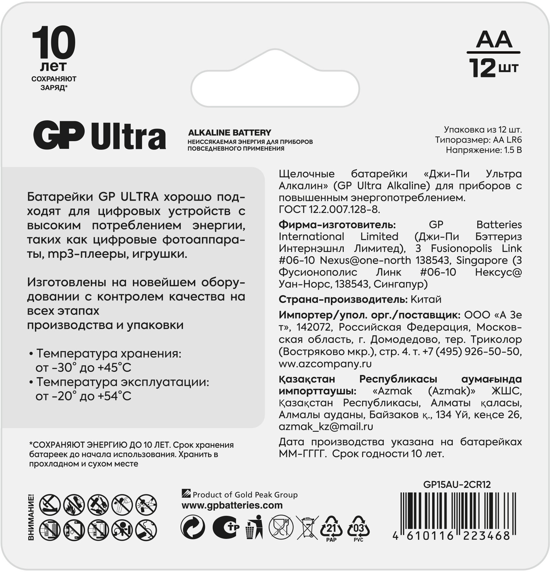 Батарейка GP Super Alkaline 15A LR6 AA (10шт) . 815 ₽ Подробнее
