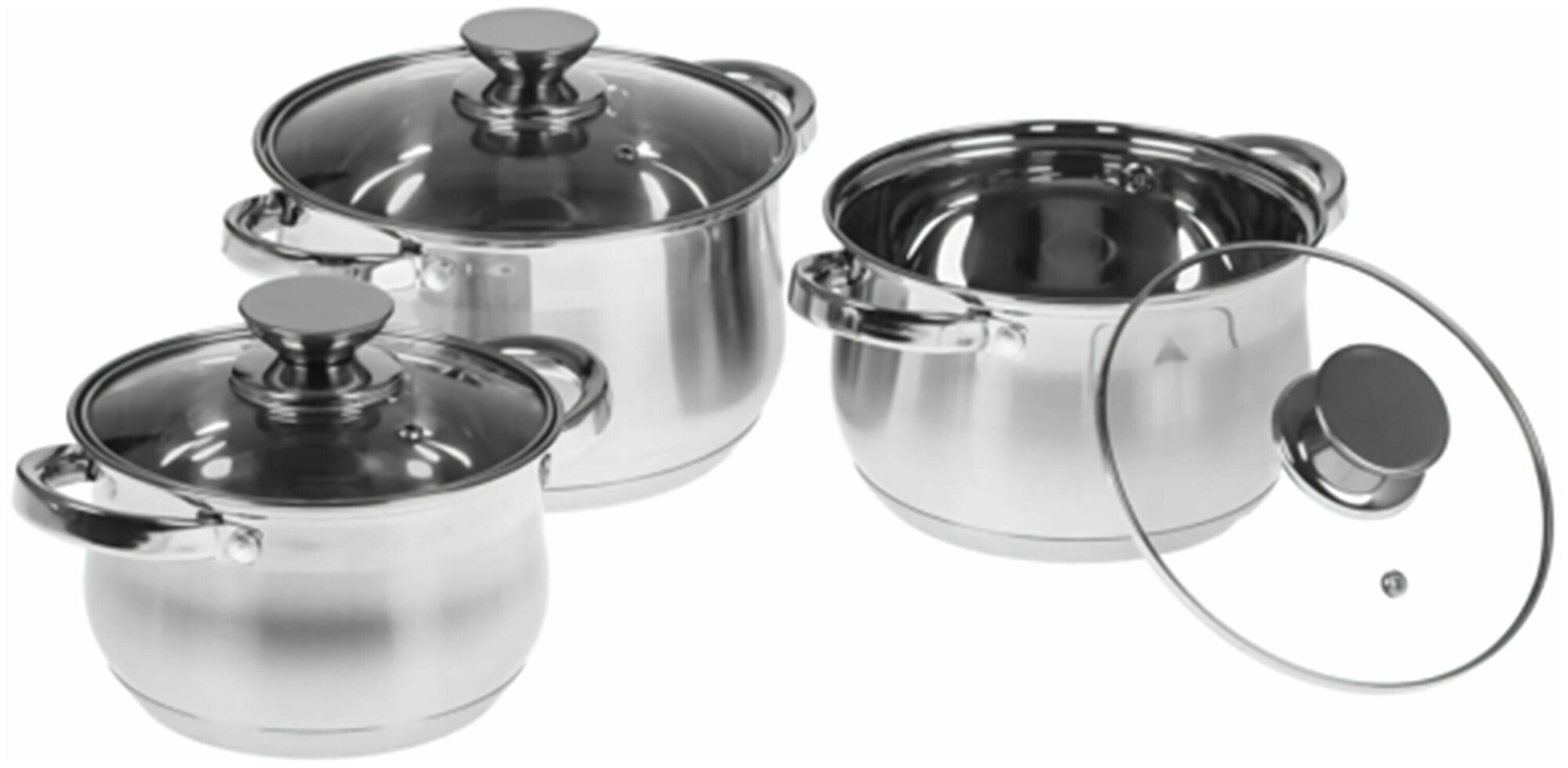Webber Be-616/6 Набор Посуды Из Нерж.стали 6 Пр. 2,1Л, 2,9Л, 3,9Л Со Стеклянными Крышками