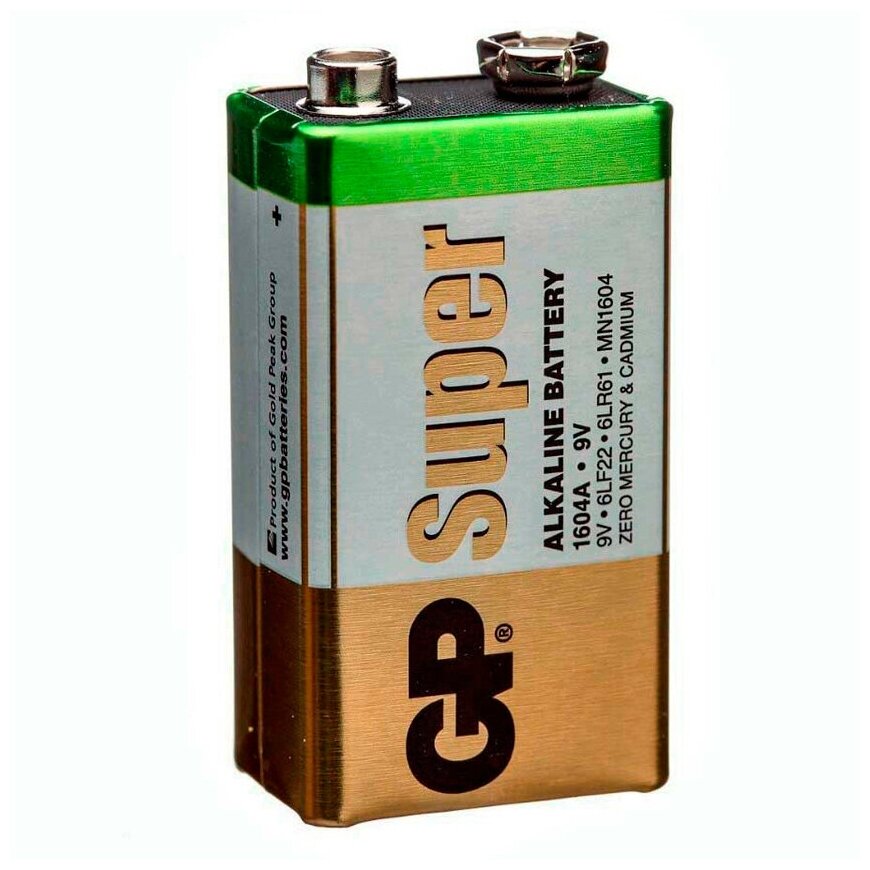 Батарейка GP Super, "Крона" (6LR61, 6LF22, 1604A), алкалиновая, 1 шт., в блистере, 1604A-5CR1, 1604A-BC1