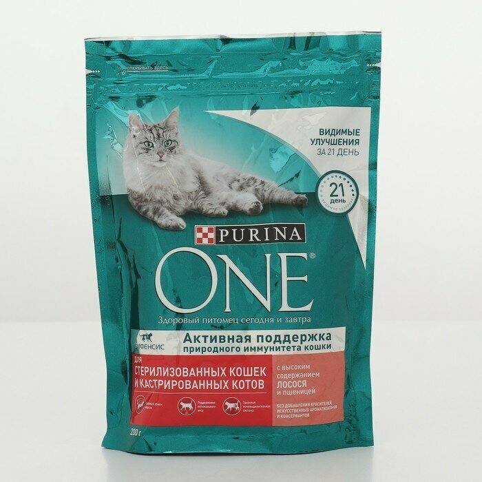 Сухой корм Purina ONE для стерилизованных кошек и кастрированных котов, с высоким содержанием лосося, 200 г 2 шт