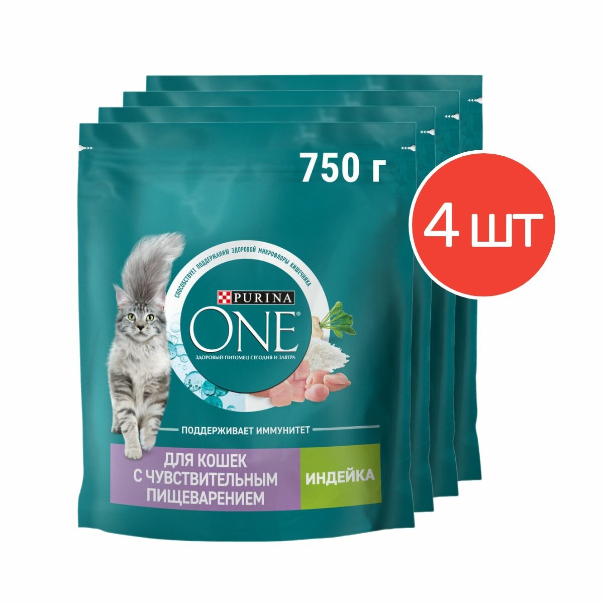 Сухой корм Purina ONE для кошек с чувствительным пищеварением с индейкой и рисом, Пакет, 750 г,Для взрослых кошек