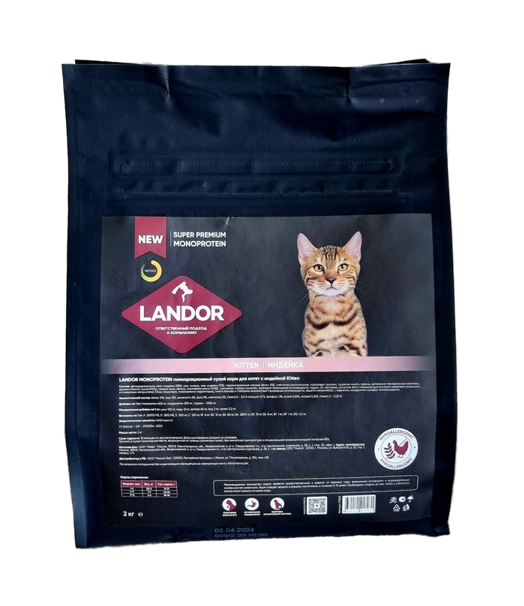 Корм для кошек Сухой корм для котят с индейкой 2кг , LANDOR MONOPROTEIN