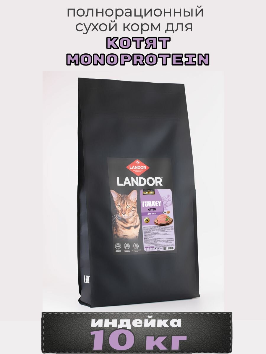 Корм для кошек Сухой корм для котят с индейкой 10кг , LANDOR MONOPROTEIN