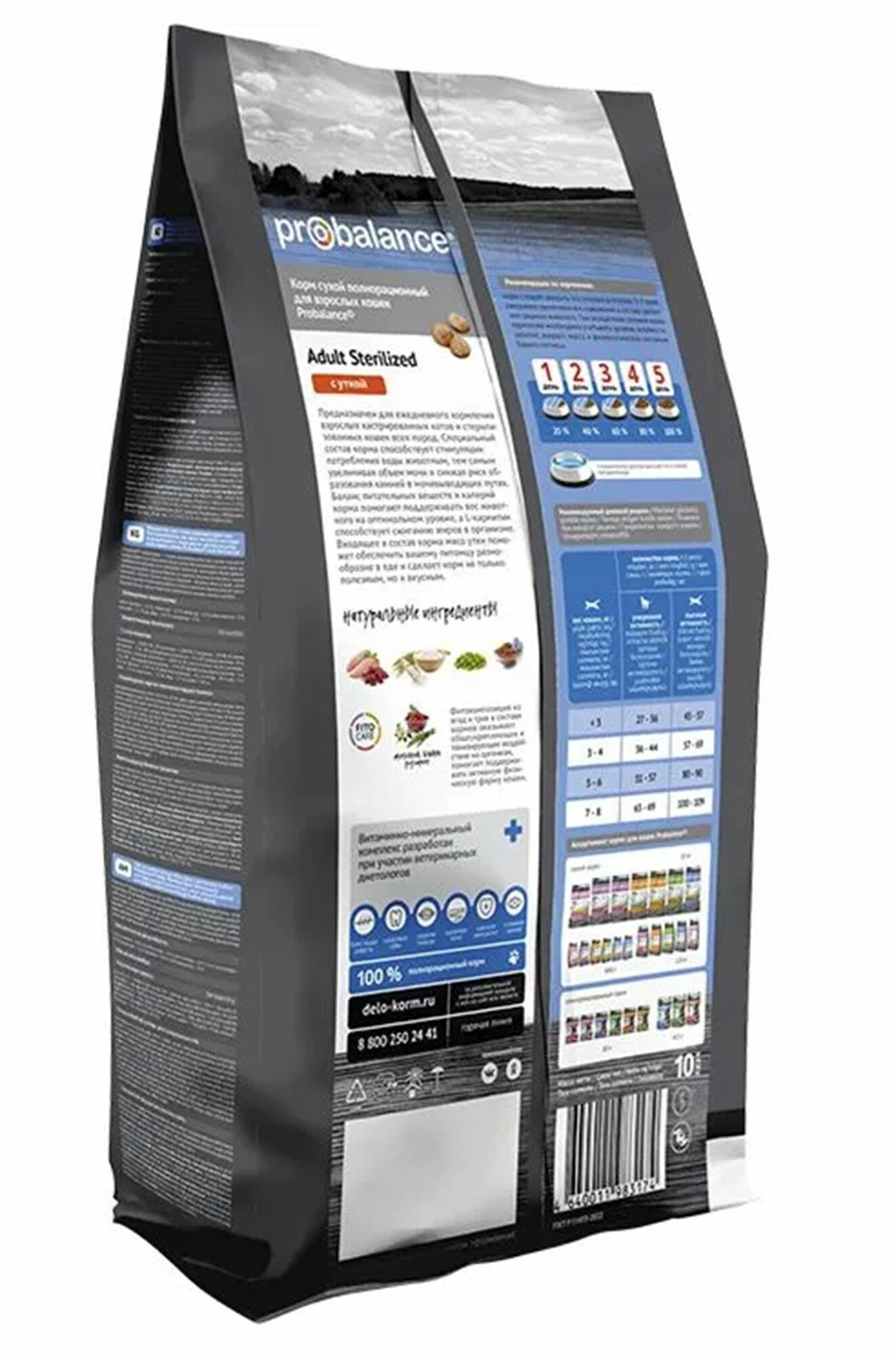 Корм для кошек Корм сухой ProBalance Adult Sterilized Duck для стерилизованных кошек и кастрированных котов, с уткой, 10 кг