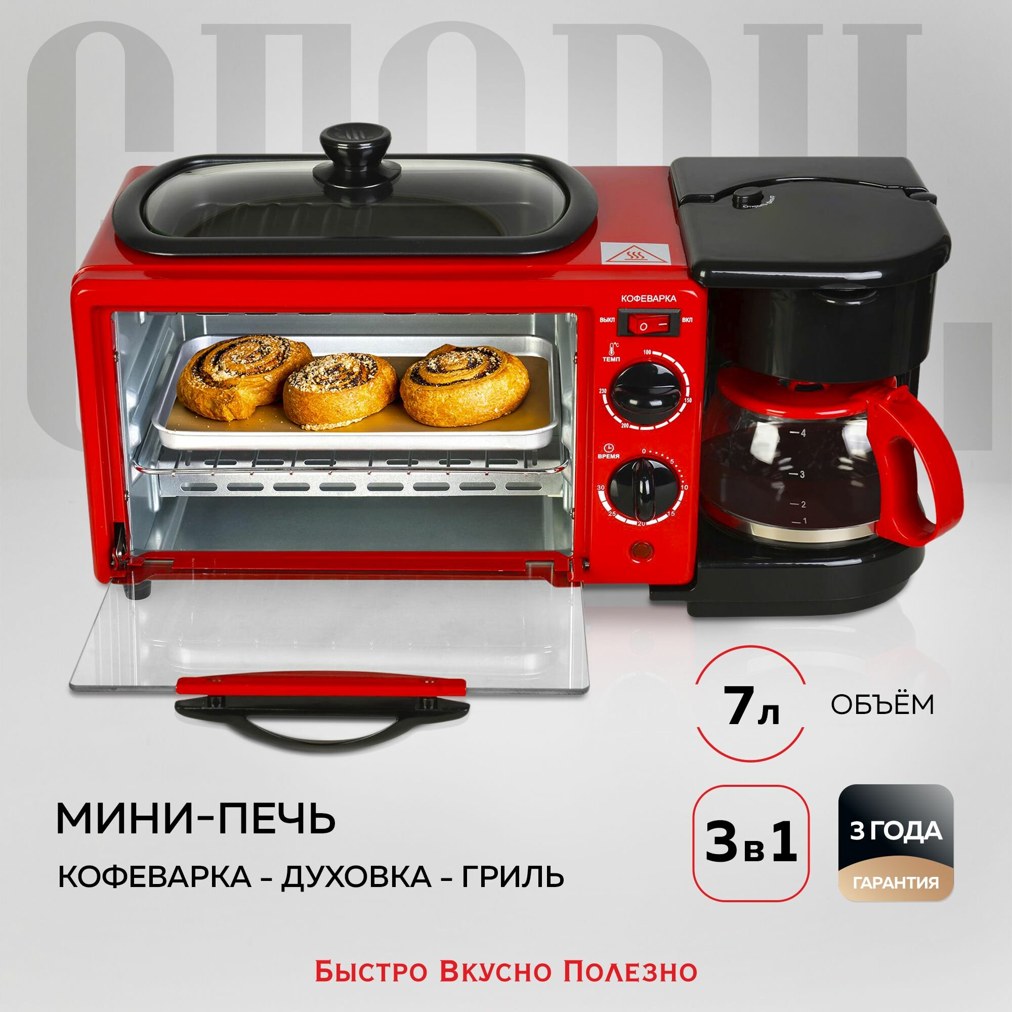 Многофункциональная мини-печь GFGRIL GFBB-7 Breakfast Bar (Кофеварка + Духовка + Гриль 3 в 1)