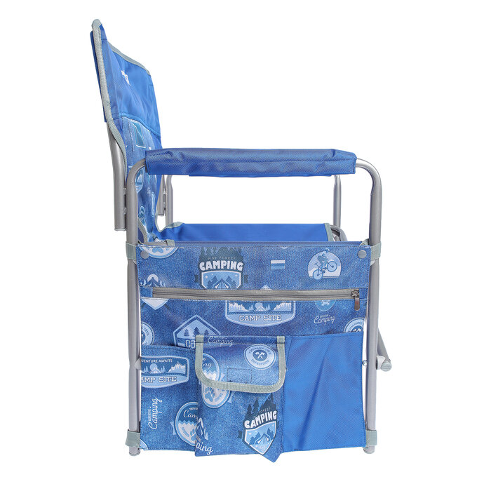 Кресло складное c карманами КС1 арт.КС1/ДС серый синий, без м/э