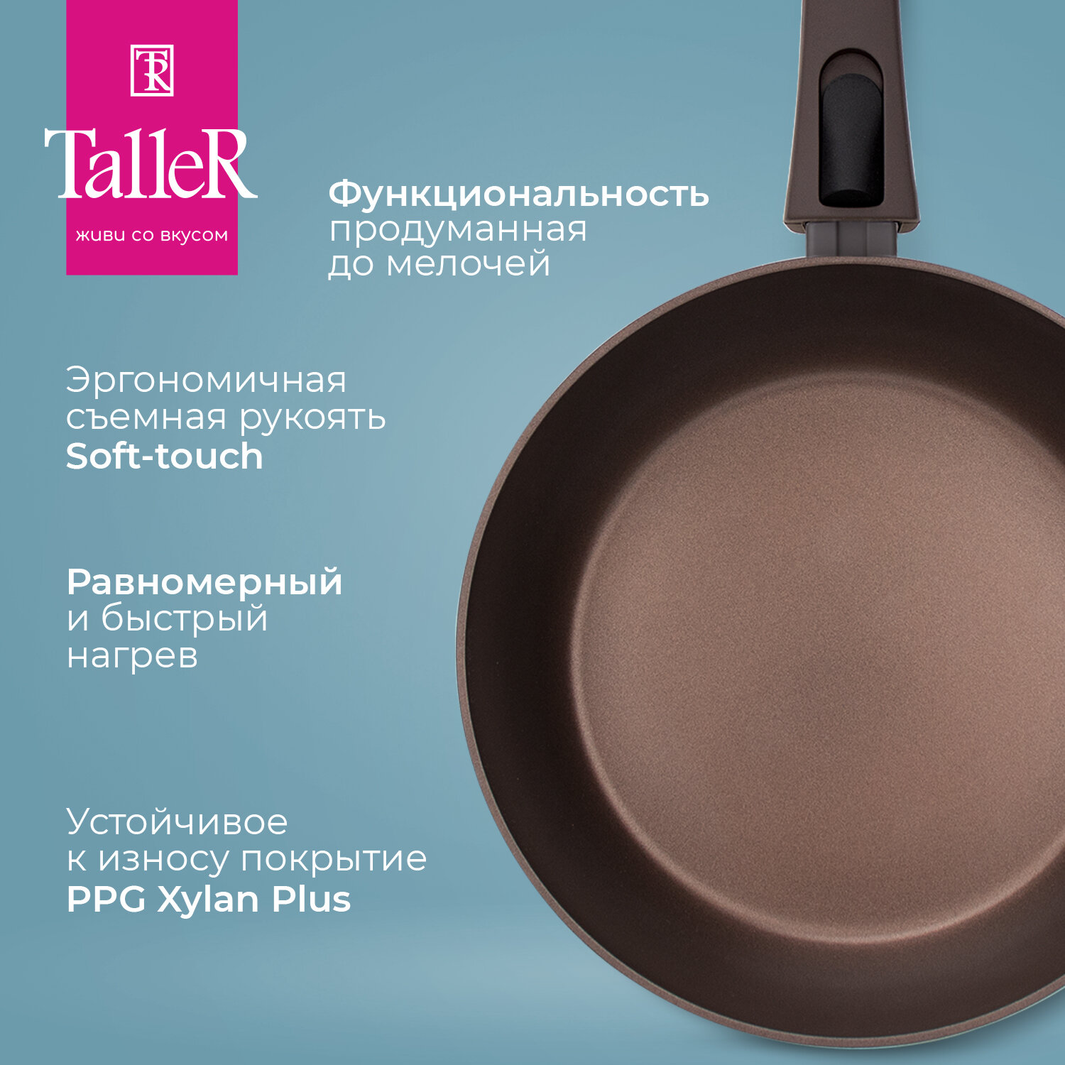 Сковорода Taller TR-44021 Минерал 22 см со съемной ручкой 2 300 ₽ Подробнее