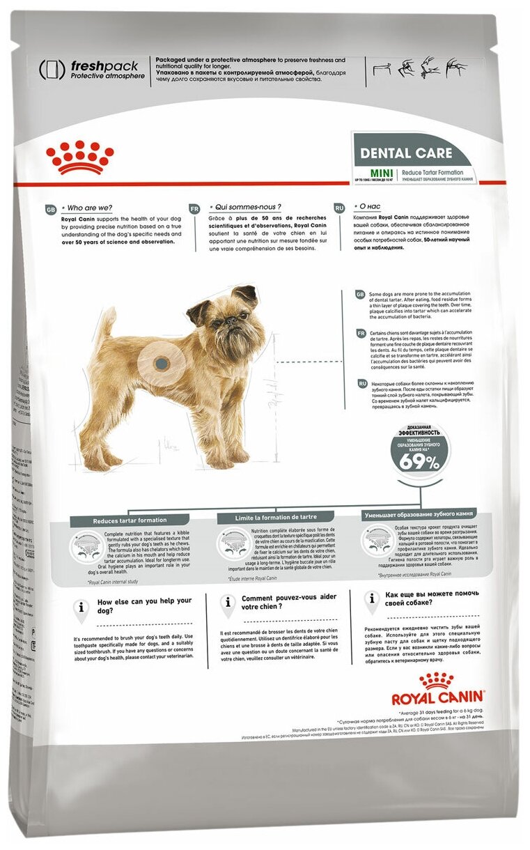 ROYAL CANIN MINI DENTAL CARE для взрослых собак маленьких пород от заболеваний зубов и десен (1 кг)