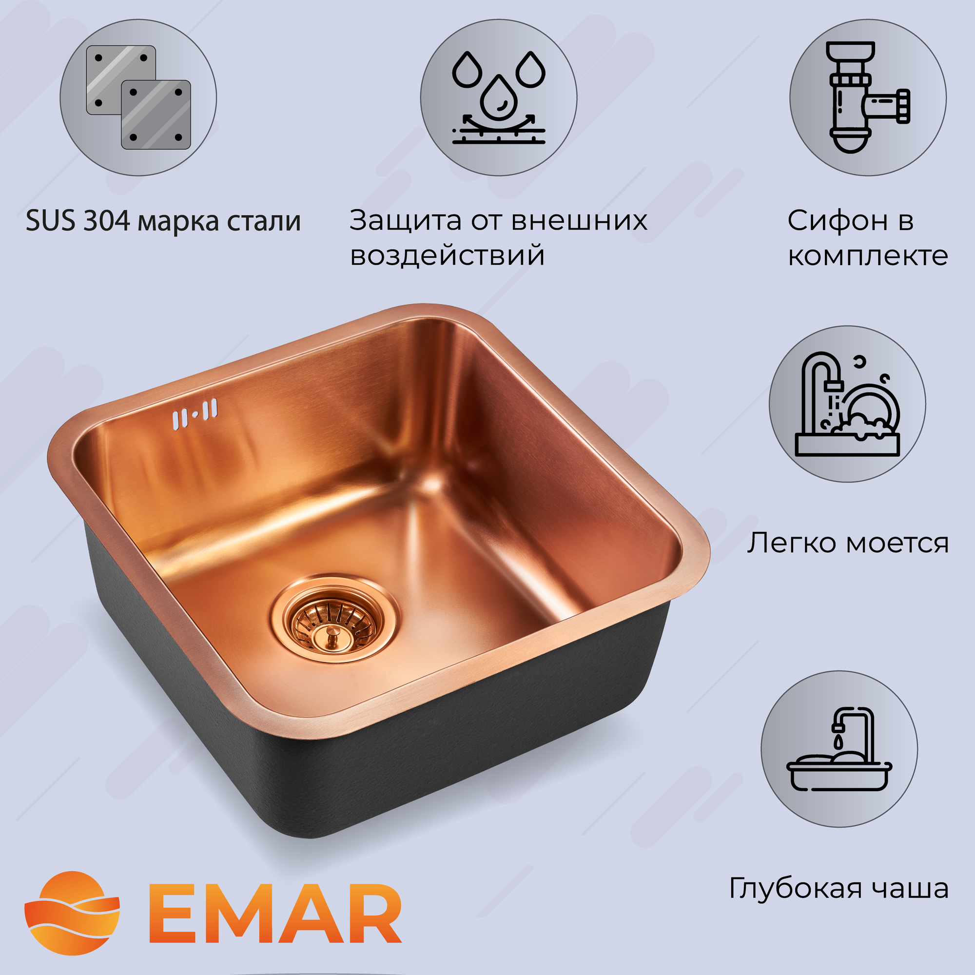 Мойка нержавеющая для кухни EMAR 530х430 EMB-115 PVD Nano Coppery