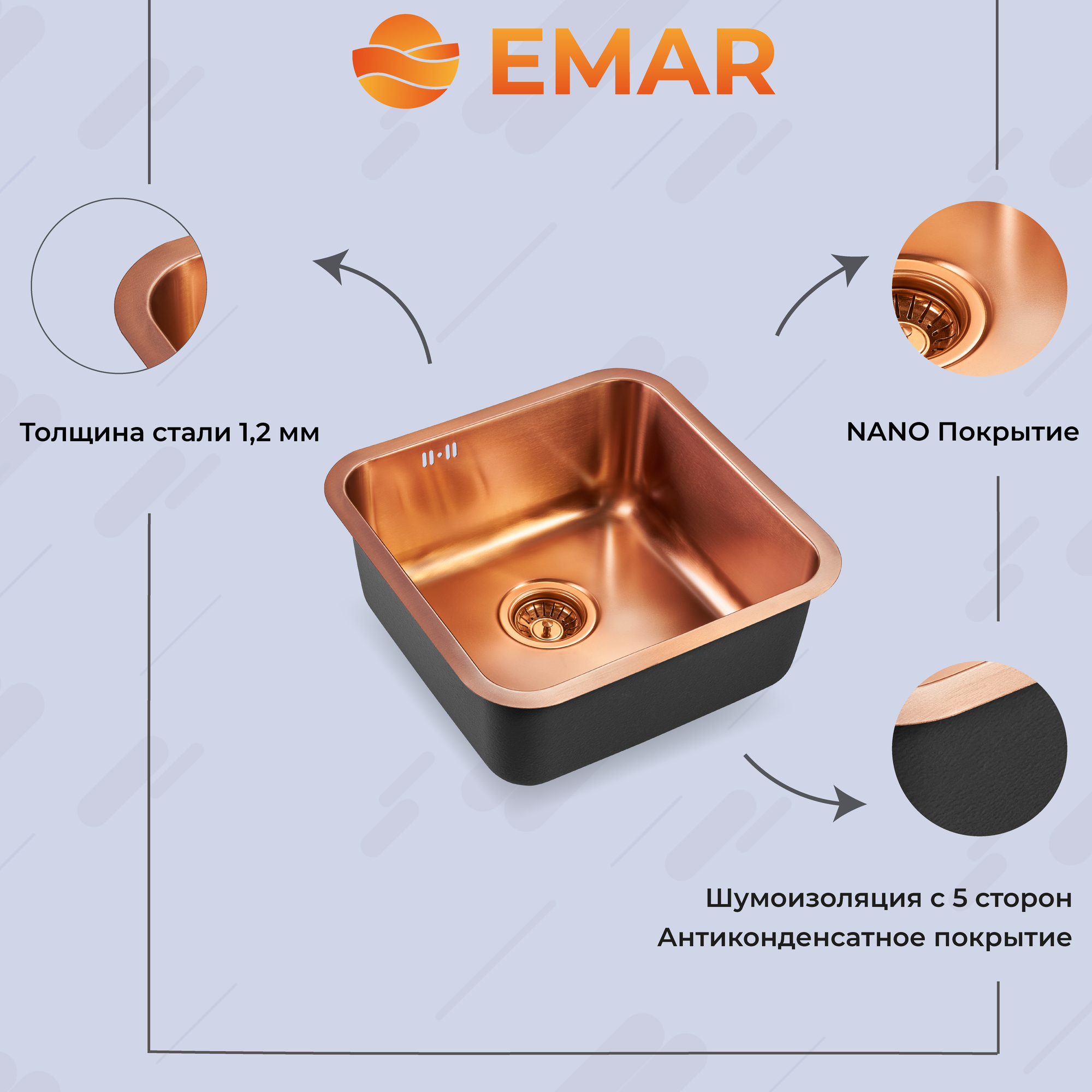 Кухонная мойка Мойка для кухни EMAR PVD Nano 127A (EMB-127A PVD Nano Coppery) Медь EMAR