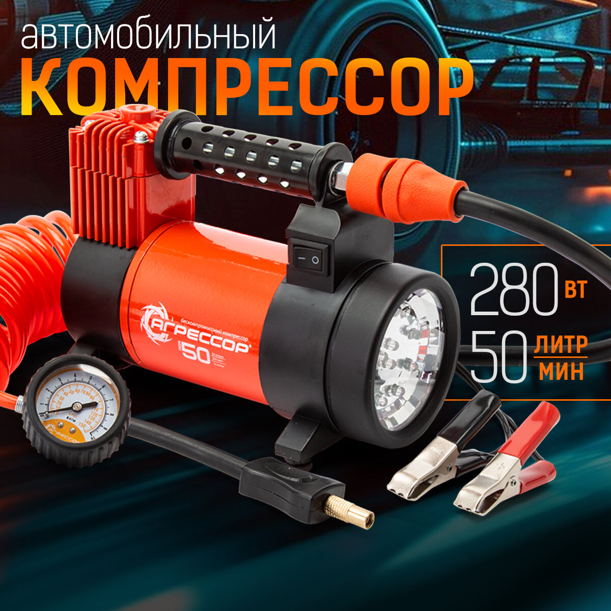 Компрессор 50л/мин,12V/23A, 280W, 10 Атм. LED фонарь AGR-50L агрессор