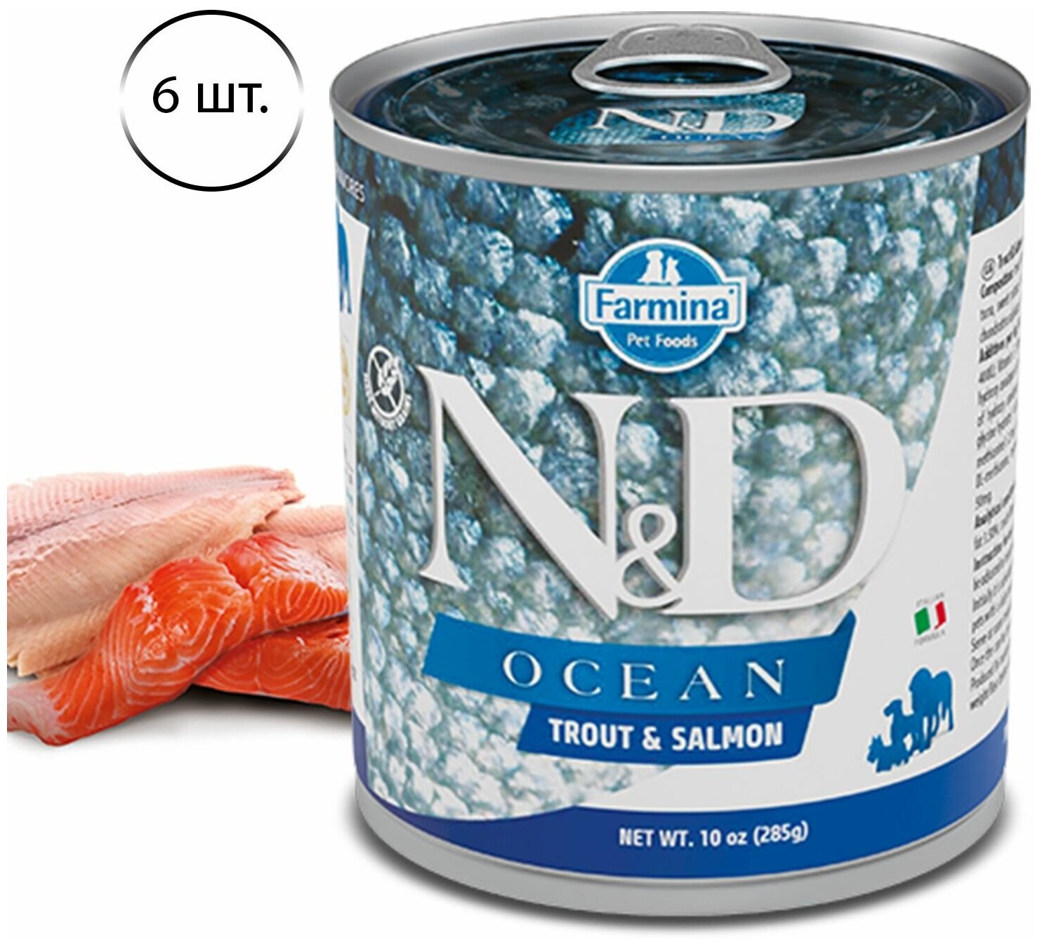Корм Farmina N&D OCEAN Trout & Salmon (консерв.) для собак, форель с лососем, 285 г x 6 шт