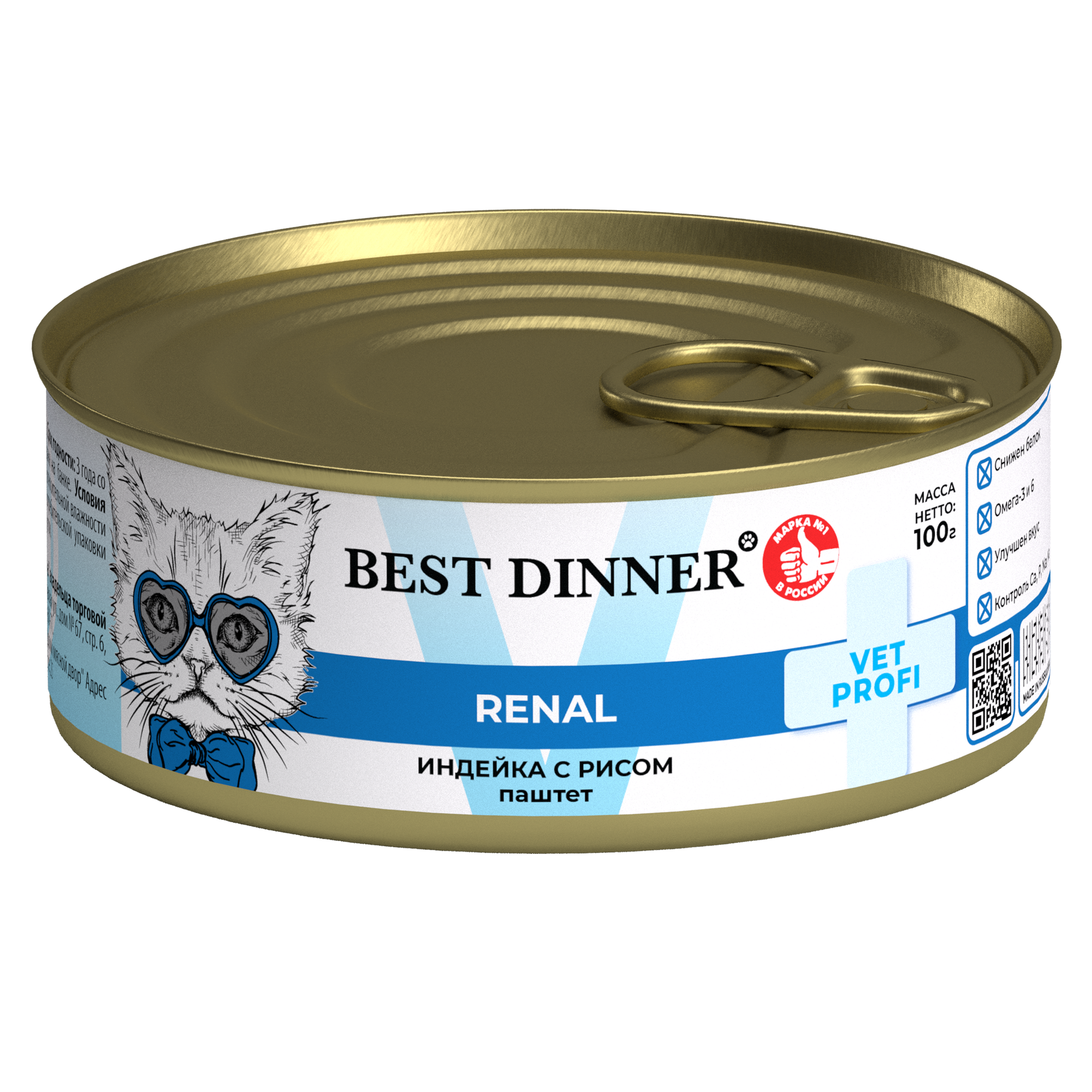 Корм для кошек BEST DINNER Vet Profi Exclusive Renal Корм влаж.индейка с рисом д/кошек конс.100г