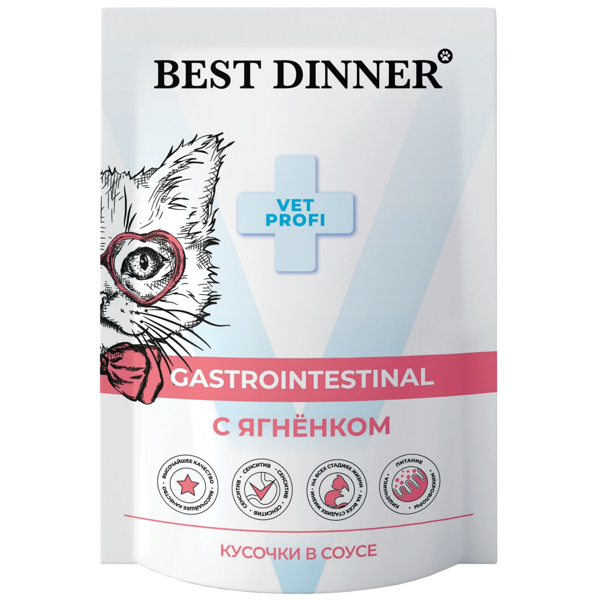 Корм для кошек BEST DINNER Vet Profi Exclusive Gastro Intestinal Корм влаж.ягненок кусочки в соусе д/кошек пауч 85г
