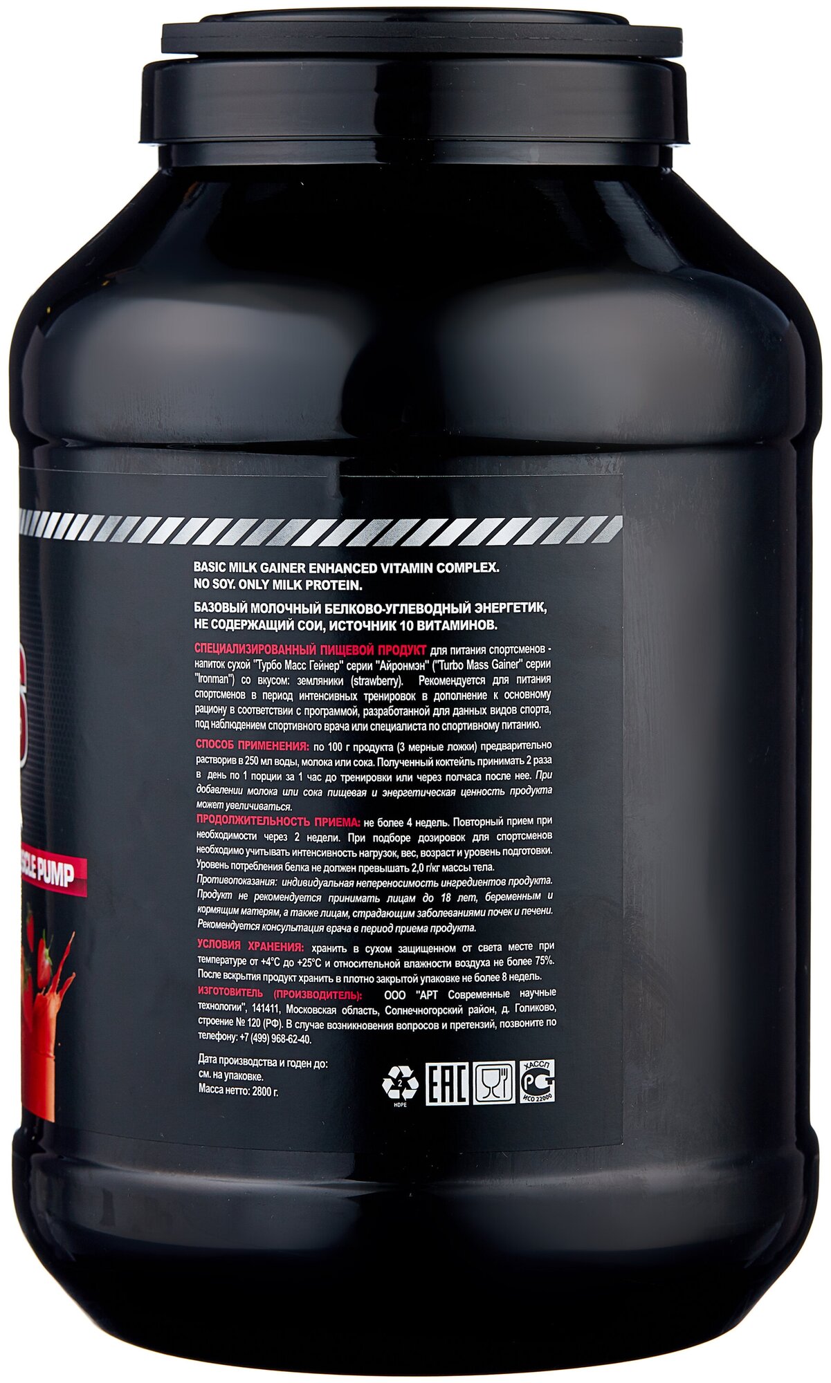 "IRONMAN" Турбо Масс Гейнер (банка 2,8 кг) земляника