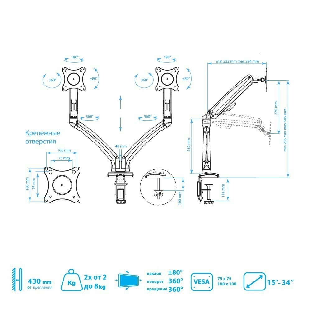 9-OFFICE black Кронштейн для мониторов Кр. стал. настол. для мон. 15-32, max 2х 2-8 кг, 6 ст 6 999 ₽ Подробнее
