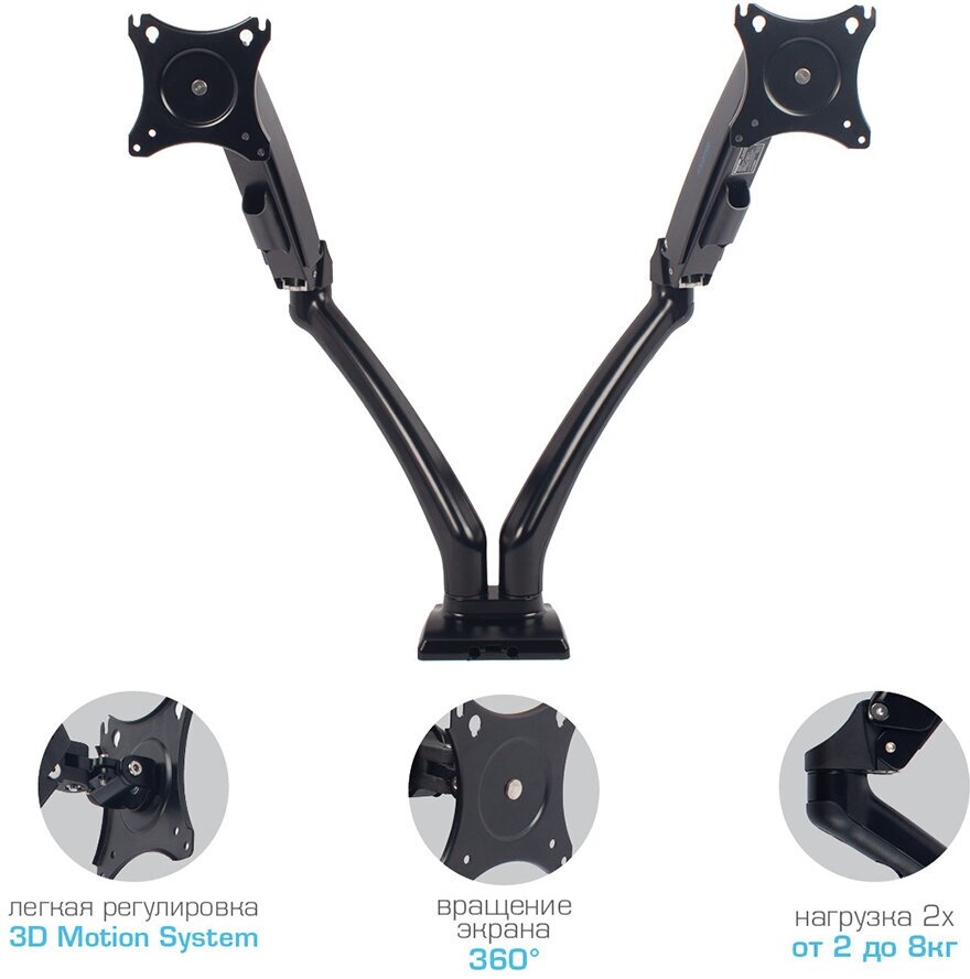 Кронштейн настольный для 2-х мониторов Kromax OFFICE-9 black