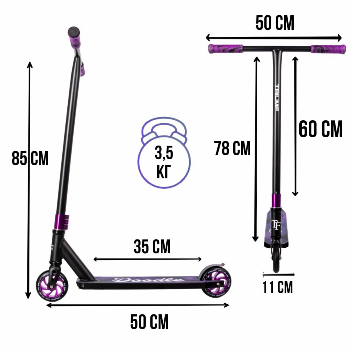 Самокаты Самокат трюковой, колеса 110 мм Triumf Active Doodle Violet (фиолетовый)