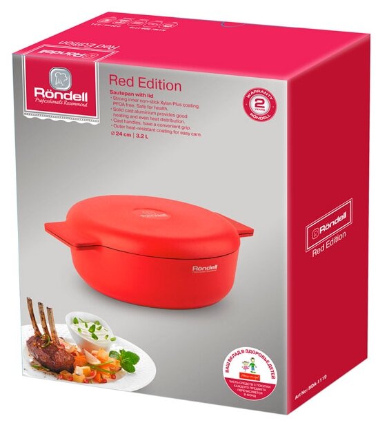 Кастрюля Низкая кастрюля с/кр (сотейник) 24 см Red Edition Rondell RDA-1119 (R)