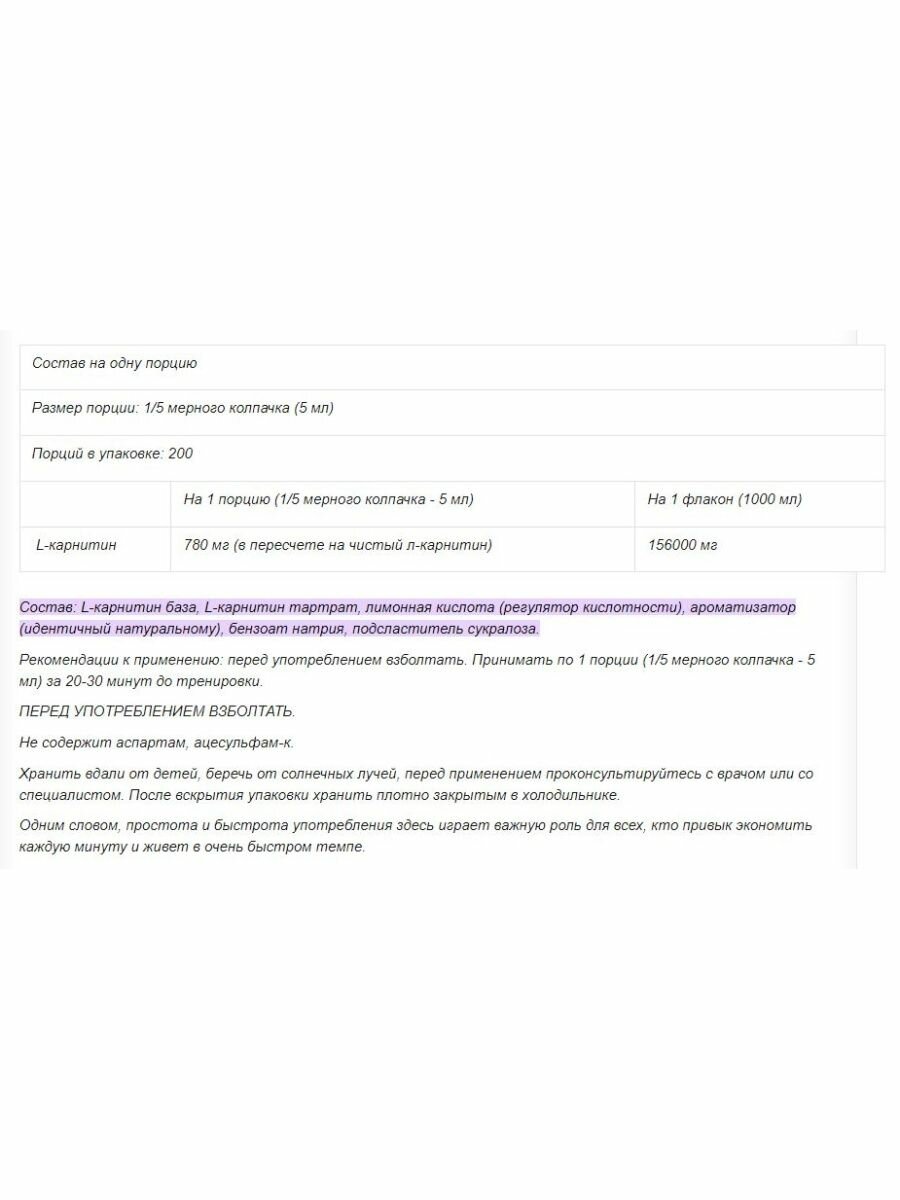 | Состав | L-карнитин |