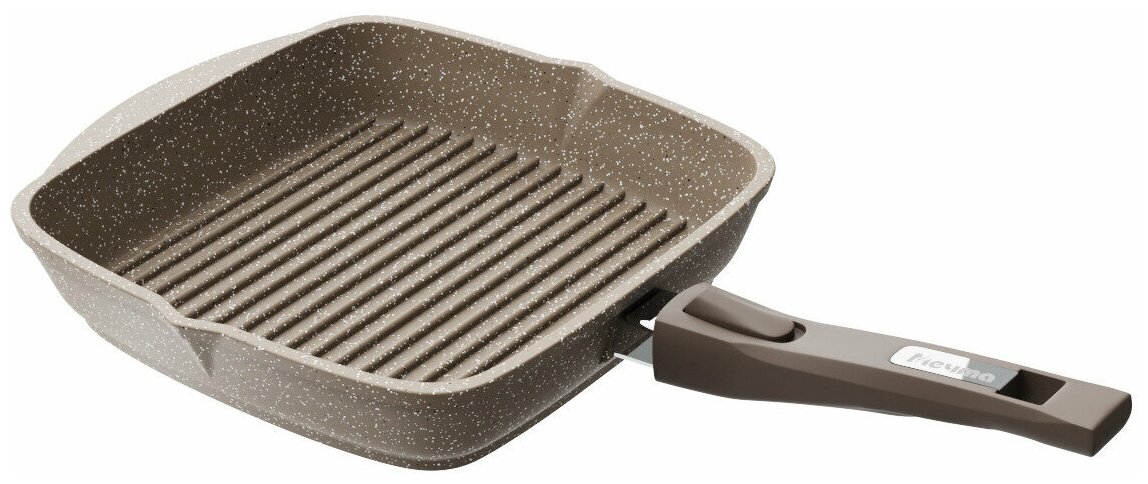 Сковорода гриль Гранит Brown 064806 со съемной ручкой квадратная антипригарная алюминий коричневый, 24×24×5см / посуда для газовых и электрических